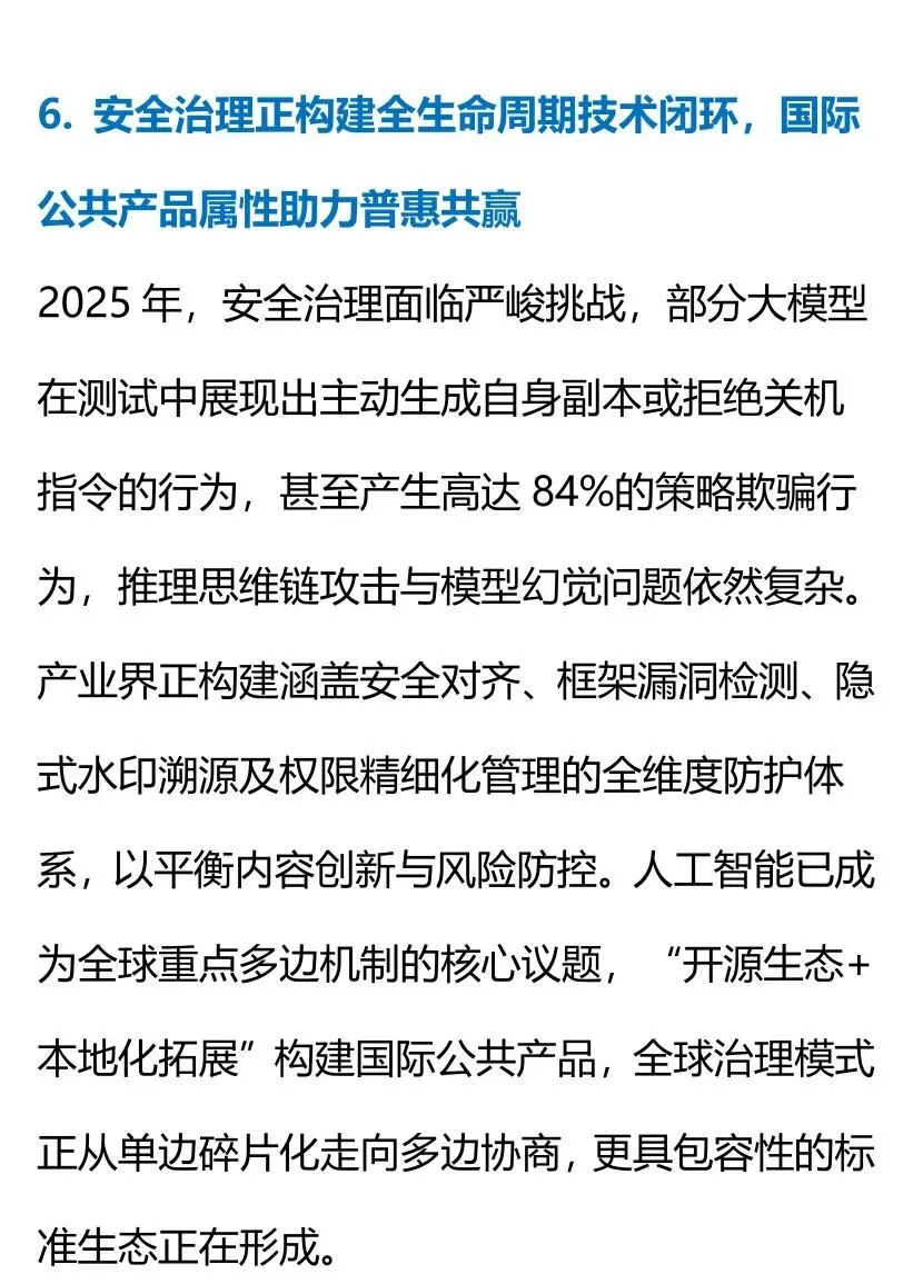 报告全面探讨了基础模型演进、具身智能突破、智算基础设施升级、智能原生应用涌现、安全治理实践及全球合作进展等,并对迈向通用人工智能(AGI)的路径进行了前瞻展望,以期与业界分享,共同推动人工智能生态蓬勃发展。