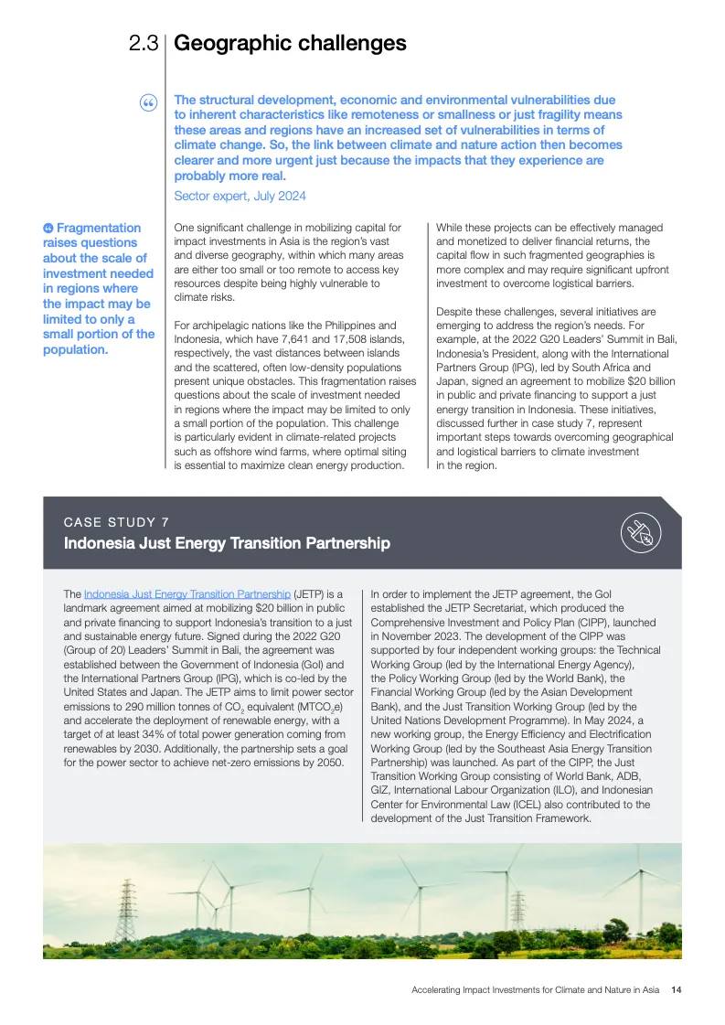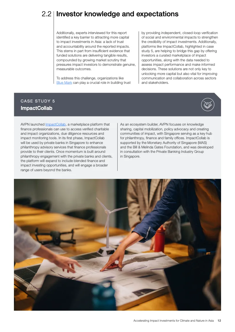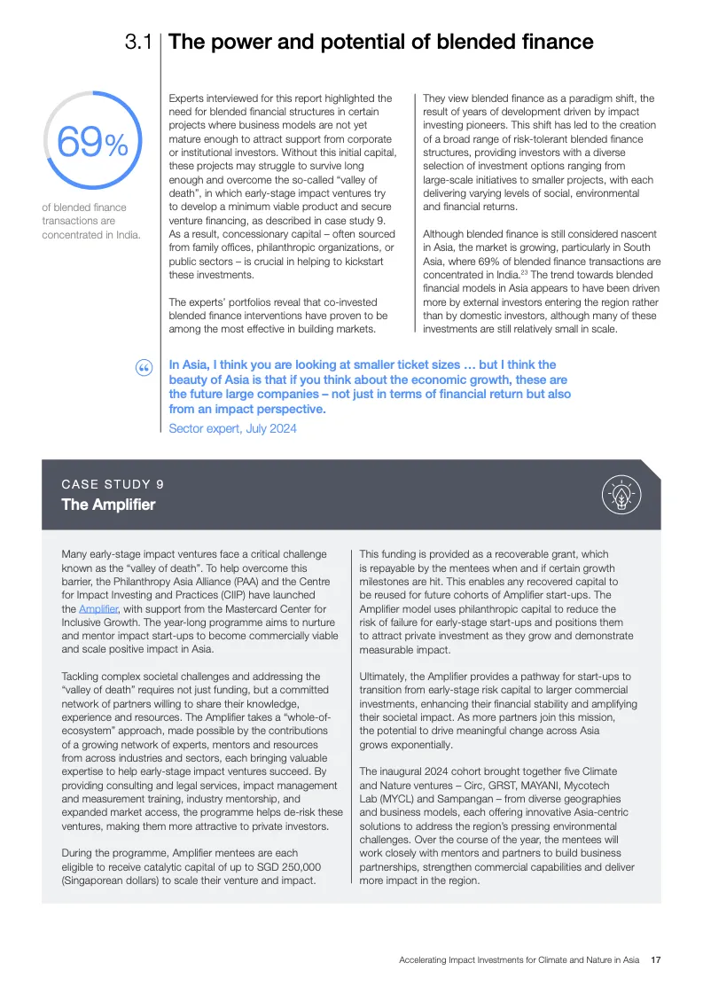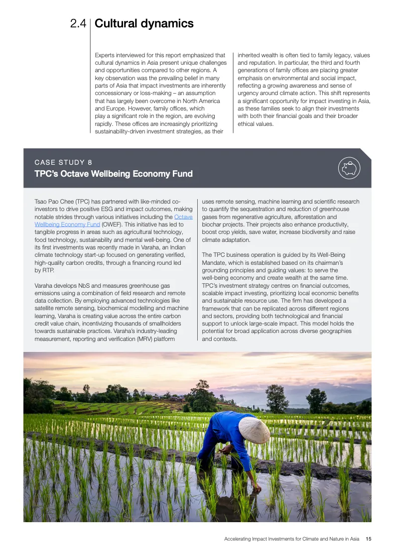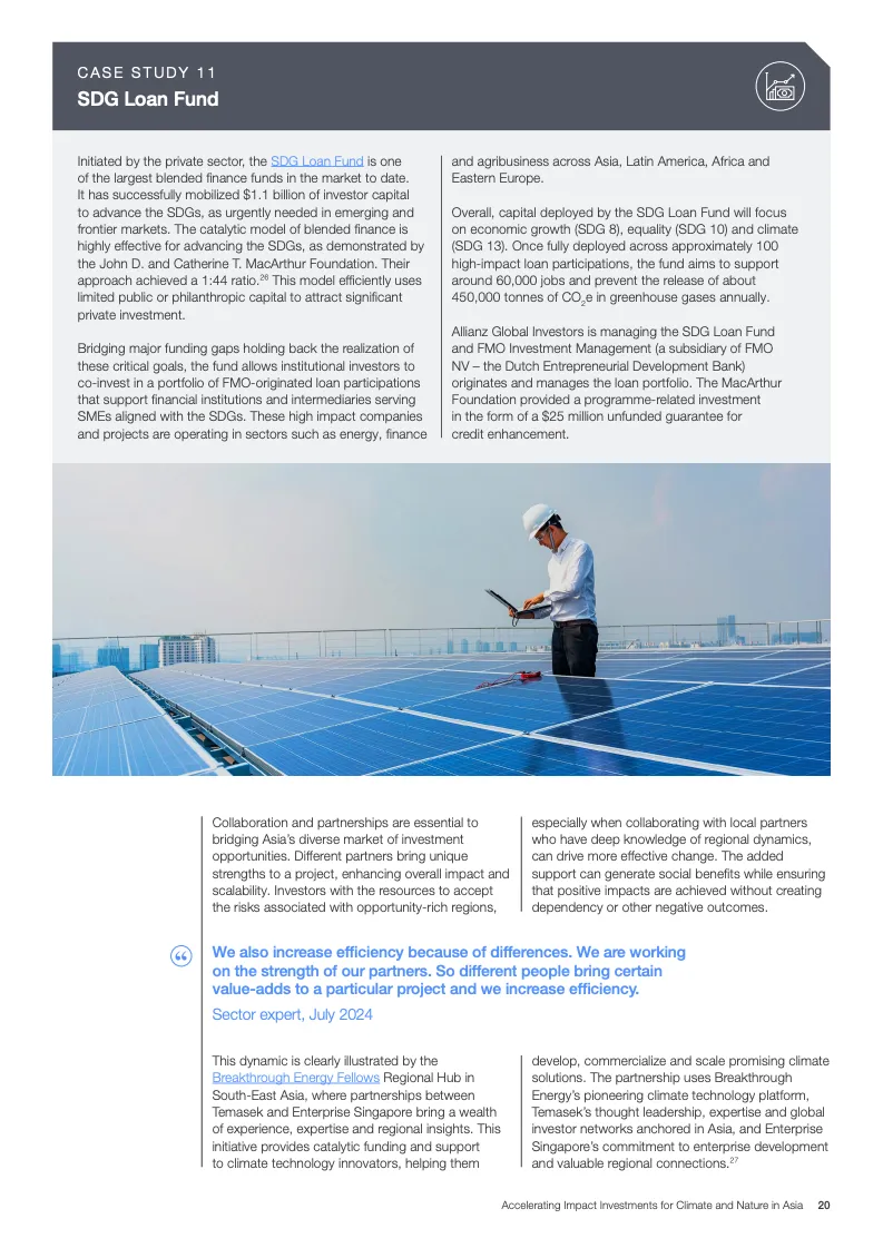 相较于欧美成熟市场,亚洲的影响力投资生态仍处于早期阶段。但得益于多元的气候与自然解决方案,该地区正吸引越来越多关注。先行者通过创新混合金融结构降低风险、提升项目可融资性,从而引导更多资本进入。市场不成熟、数据匮乏及高风险认知等挑战,仍阻碍着兼具可量化正向影响与财务回报的优质投资机会识别。