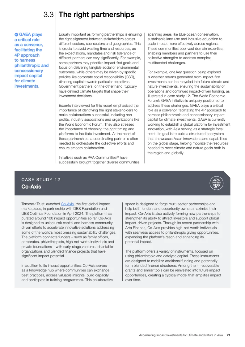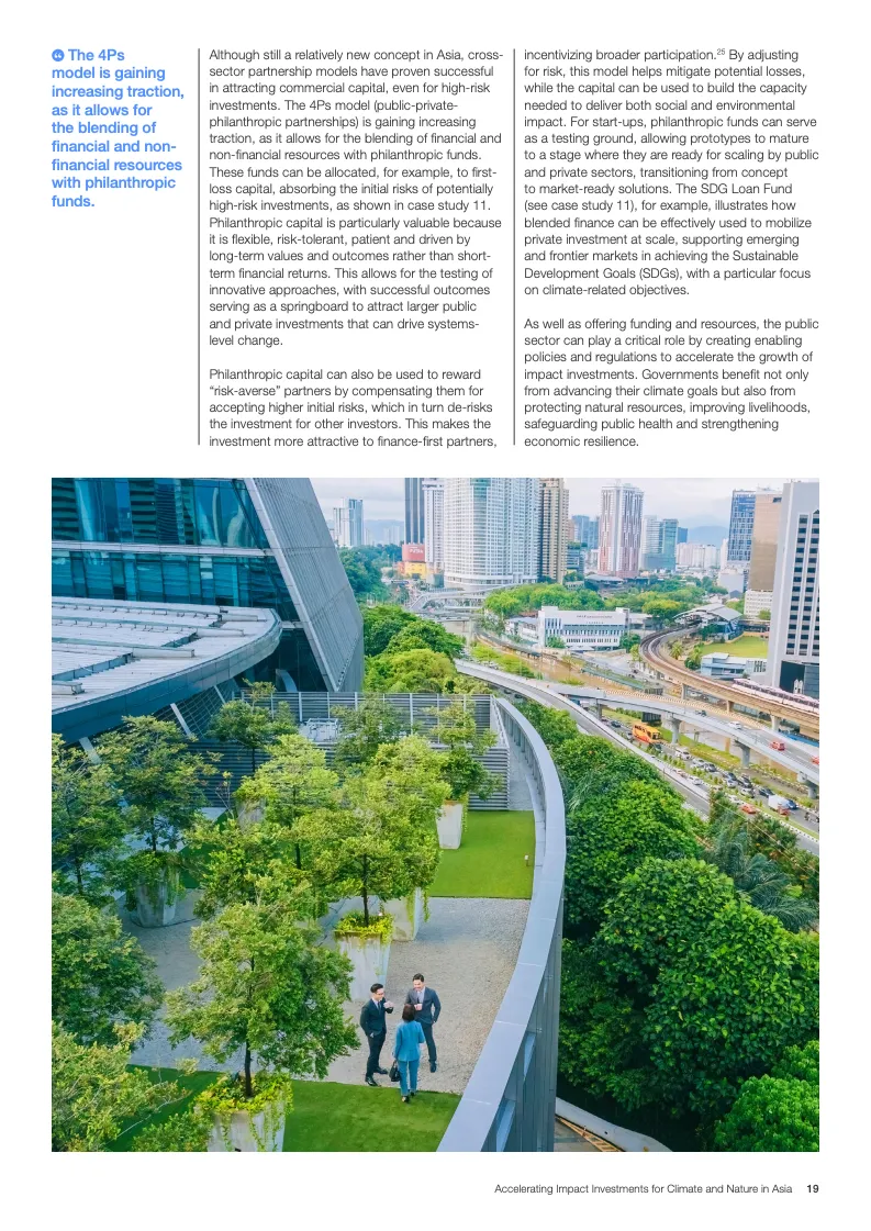 报告指出,跨越公共部门、私营机构与慈善行业的协作是突破这些壁垒的关键。通过整合各方优势,这类合作能构建可持续的金融架构,撬动额外私人资本,使投资更具规模效应、可复制性和吸引力。这种协作将创造环境-社会-经济的三重共赢,同时促进资源整合与资金流动。