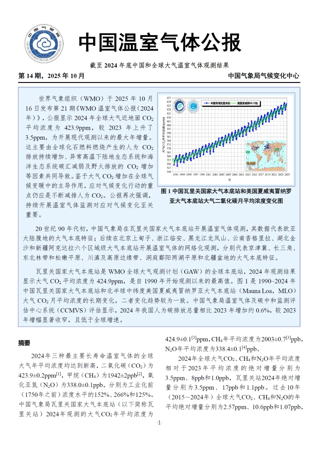 报告丨中国气象局发布《中国温室气体公报(2024年)》(附全文)
