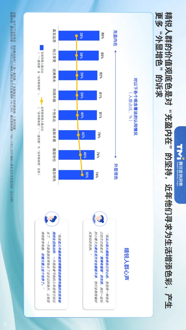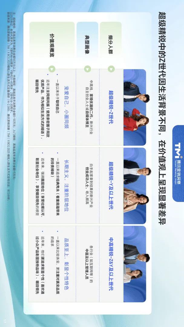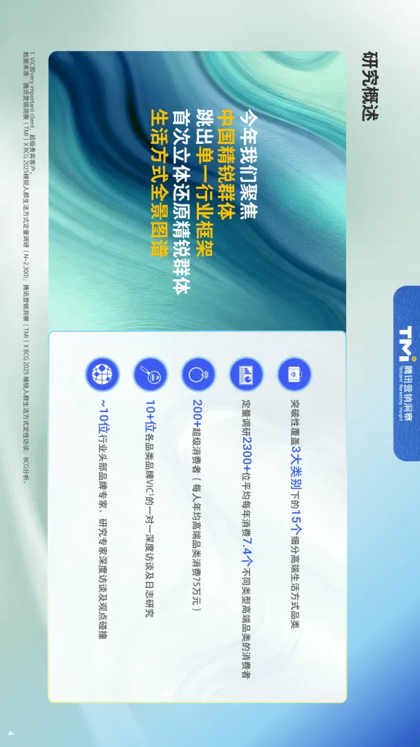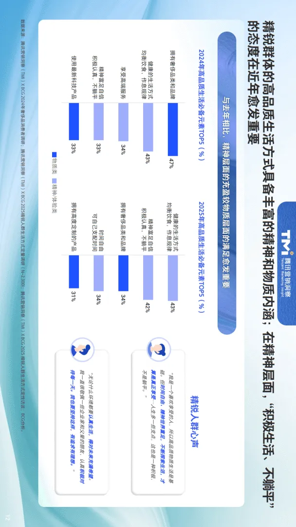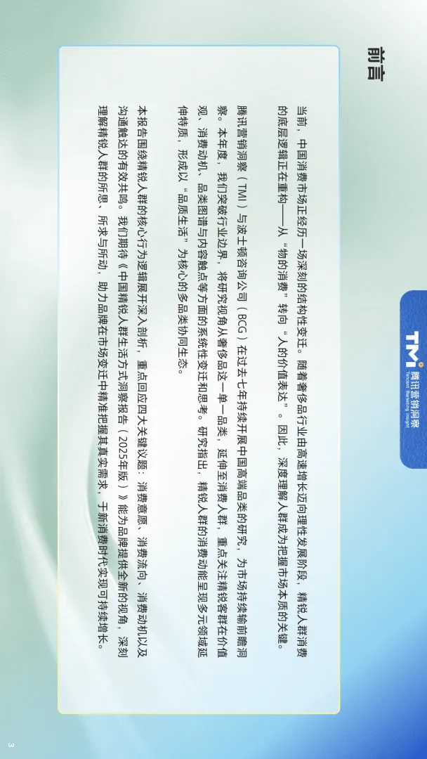 近日,腾讯营销洞察(TMI)与波士顿咨询(BCG)联合发布了《2025年中国精锐人群生活方式洞察报告》,基于去年2300+定量调研与200+超级消费者深度访谈,全景解析年收入20万元以上、年消费3个以上高端品类的精锐人群生活方式与消费趋势。