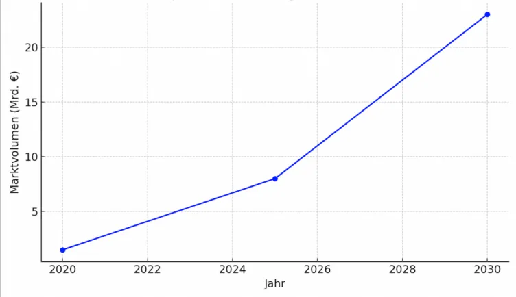 Marktvolumen: Für 2030 wird in Deutschland ein jährliches Marktvolumen von rund 23 Milliarden Euro für Speichertechnologien prognostiziert.