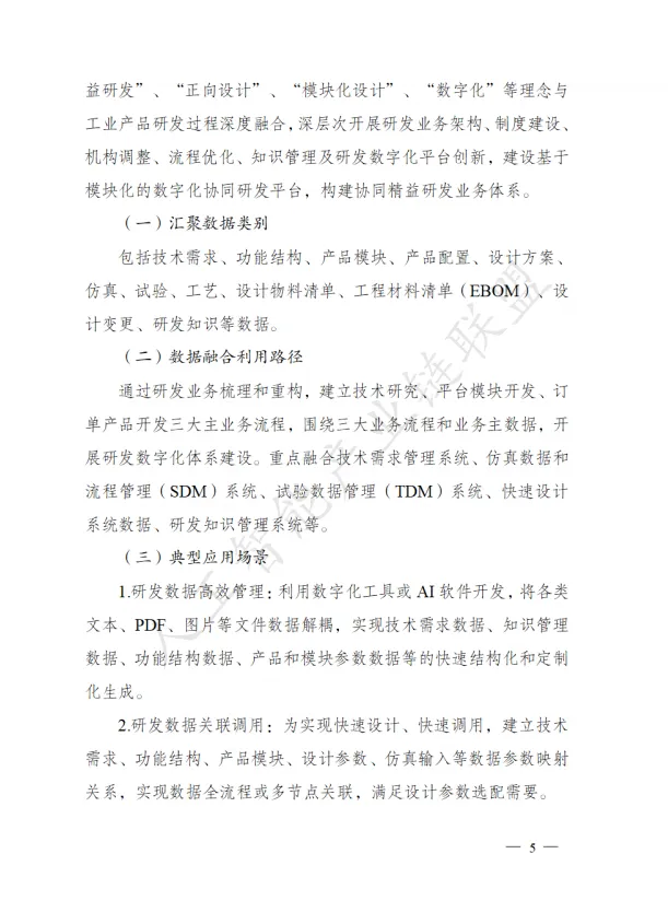 创新应用: 实现研发数据高效管理(利用AI软件开发实现文本、PDF、图片等文件数据解耦与快速结构化)、研发数据关联调用(建立技术需求、功能结构、产品模块等数据参数映射关系)、模块化研发设计(开发"菜单式""搭积木式"产品快速设计功能)、仿真算法快速应用。