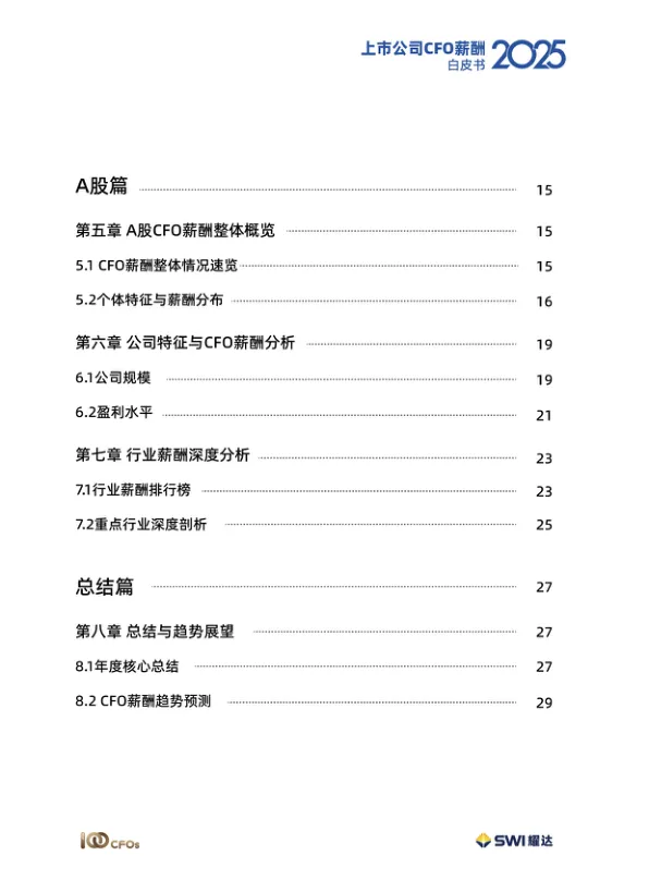 - A股:金融地产行业CFO薪酬最高(平均122.4万),其次是医药医疗(94.5万)和高科技(90.7万)。