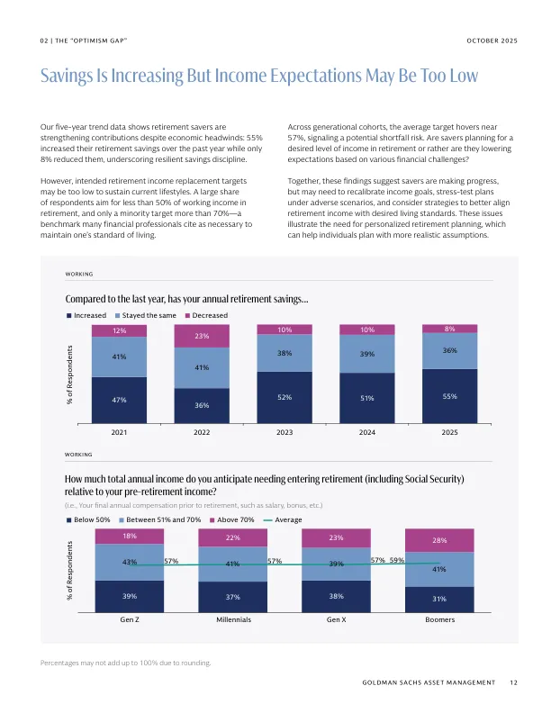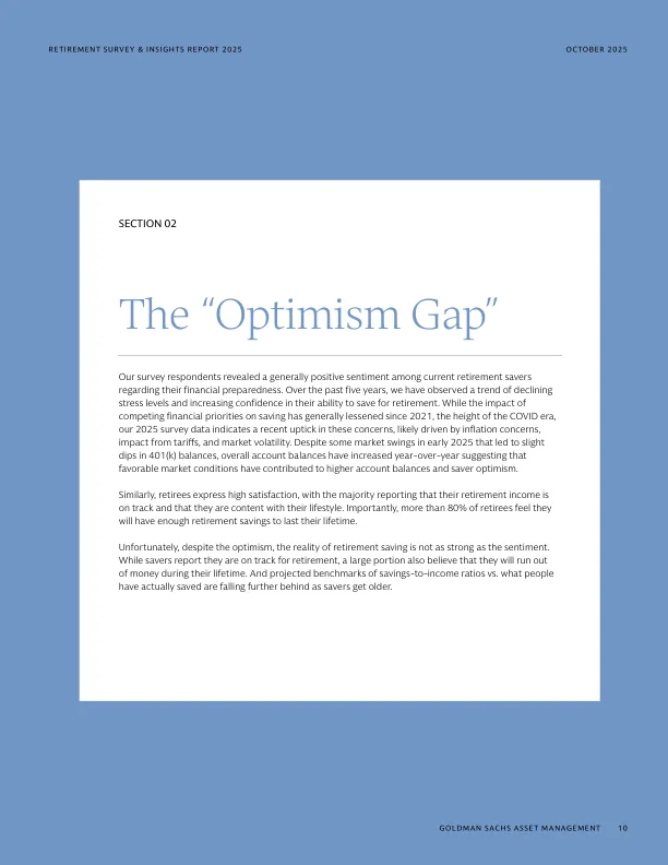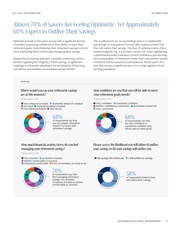 - 表面乐观:近70%的在职者对自己的退休储蓄感到自信或认为进度正常。