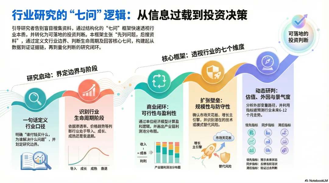 想要在信息的洪流中保持清醒,快速透视一个陌生领域,你需要一套强大的判断框架。本文将为你介绍一个清晰、实用的七问框架,帮助你摆脱信息噪音,直击行业研究的核心,真正洞察一个行业的价值。