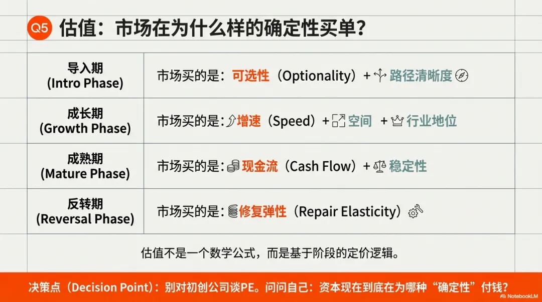 成熟期:定价的是稳定现金流和确定性。