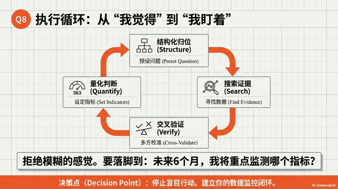 这套七问框架的核心价值,在于它推动我们从一个被动的信息接收者,转变为一个主动的判断制造者。它要求我们“结论先行”,然后用“结构化归位”和“交叉验证”的方法去填充证据链,最终形成自己的决策依据。