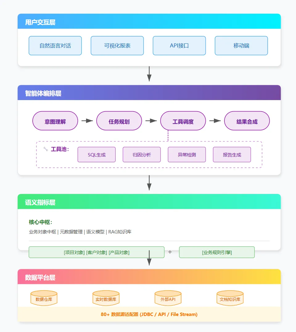 举例:某零售企业在BI系统上加了ChatGPT接口,用户问"上周销售冠军是谁",系统只能返回销售额排名,无法理解"冠军"背后可能涉及的毛利率、客户满意度等综合指标。