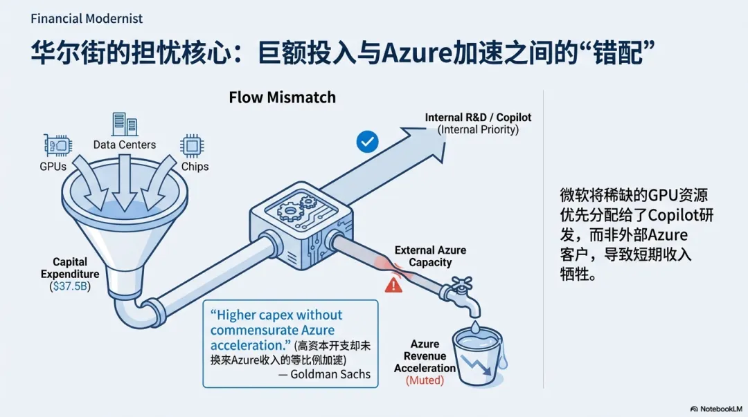 听起来很合理,对吧?但它恰恰点燃了另一种更尖锐的担忧——微软说增长受限于 GPU 供应,可他们花钱买设备、建数据中心的速度,却在疯狂加速。