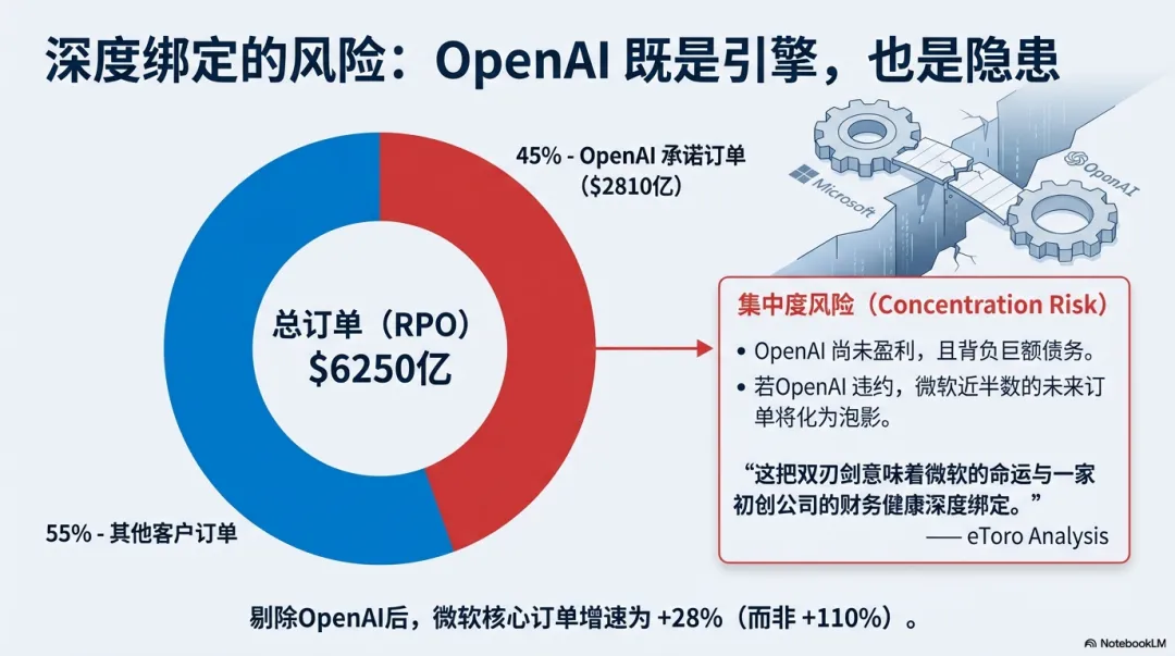 但往下挖了一层:这 6250 亿里,有高达 45% 来自同一个客户——OpenAI。
