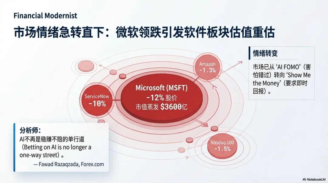 最值得注意的是:微软这一跌,引发的不是一家公司情绪波动,而是一场软件行业的小型恐慌。财报发布后的第二天,不只是微软,整个科技板块都被带着走。