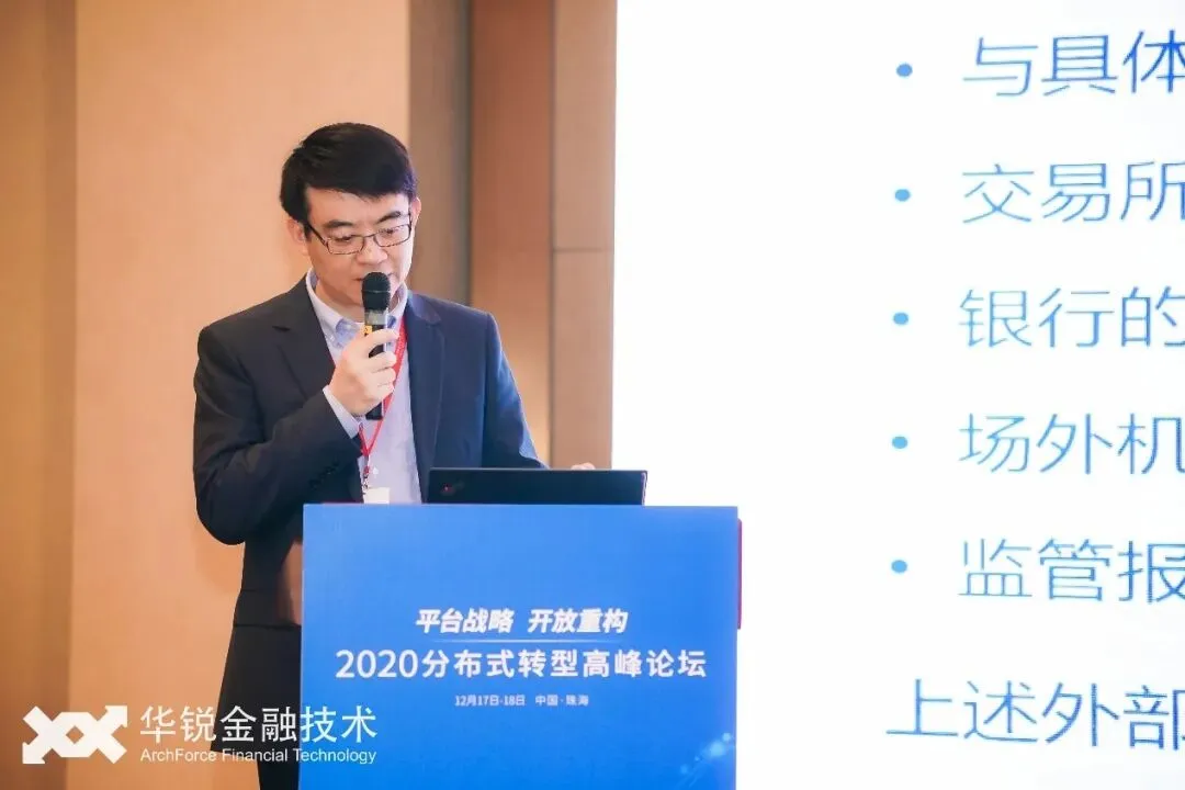 2020年12月17-18日,华锐金融技术在珠海举办了第二届“分布式转型高峰论坛”。本次论坛以“平台战略、开放重构”为主题,来自证券公司、领先商业银行、著名私募机构、行业生态伙伴、顶级设备厂商等130多家机构共计600余位嘉宾出席。本次峰会设一场主论坛,五场平行专业论坛。小编会陆续为各位读者呈送各专业论坛的精彩内容。