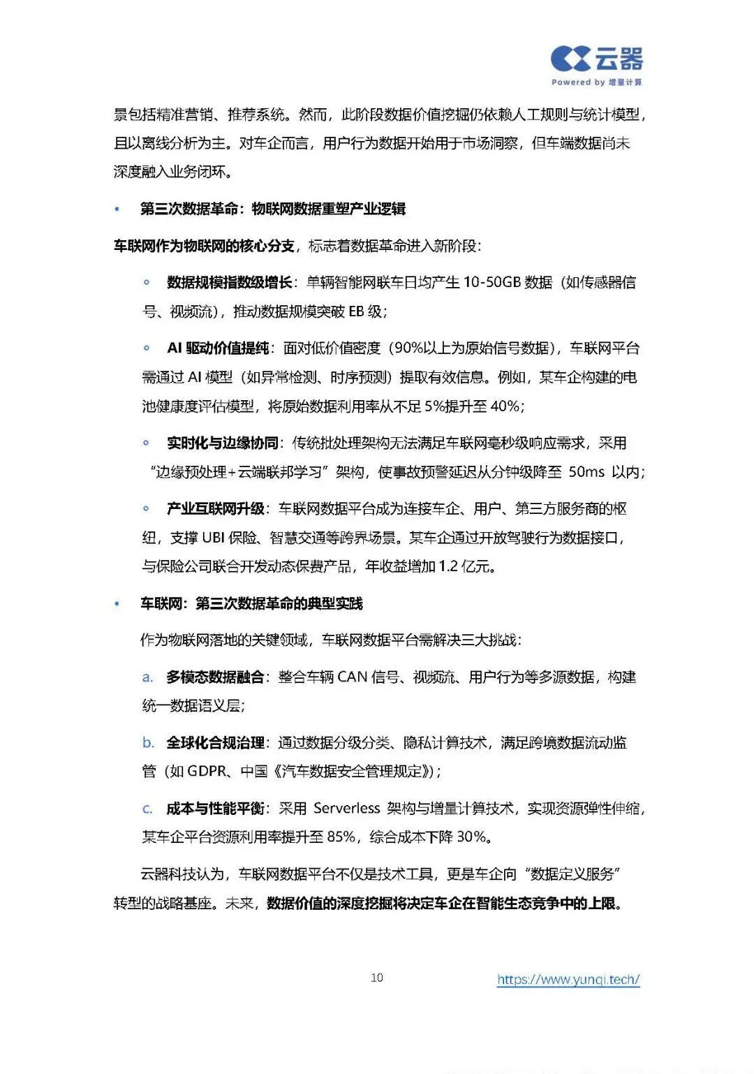 数据平台与AI深度耦合,支撑车辆全生命周期管理(研发-生产-使用-回收)与跨域协同(车-路-云-能源),支持包括智驾的半/非结构化数据的管理和应用。例如,为智驾提供基础数据,基于电池健康度预测的梯次利用,推动车企从“制造利润”向“数据价值运营”转型。