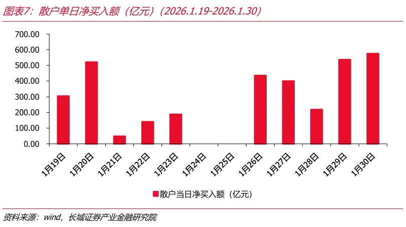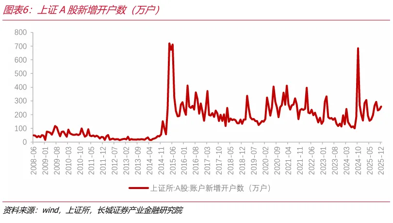 (2)其他市场资金来看,除ETF外其他资金力量仍相对积极。上周散户资金整体表现为净流入,流入规模高于前周。2025年12月上证所A股新增开户数量相较前月有所提升。