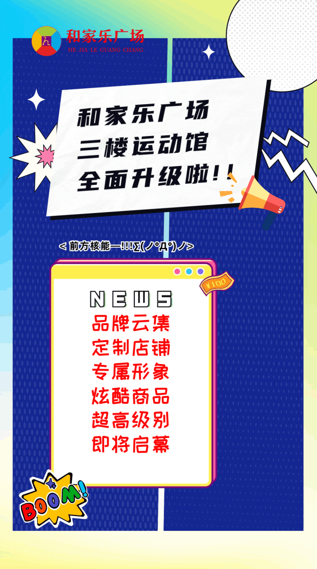 【和家乐广场】3F运动馆,全面升级啦!品牌云集,定制店铺,专属形象,炫酷商品,超高级别,即将盛大启幕!!