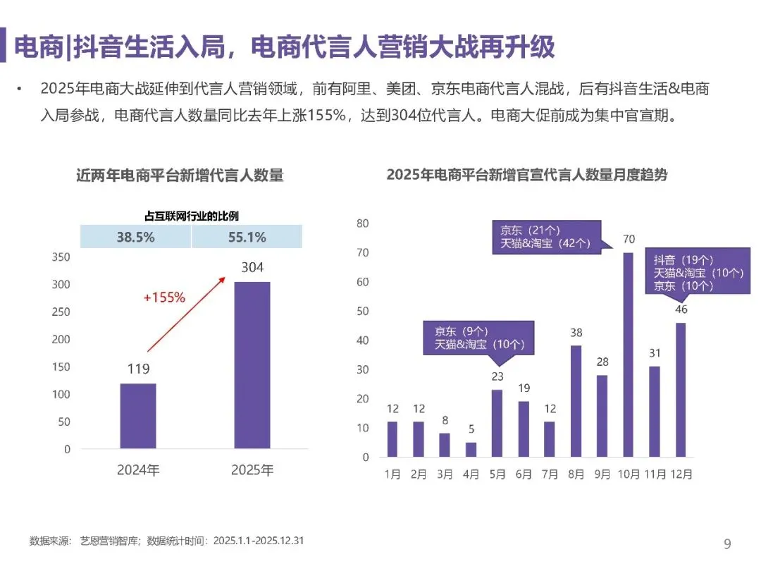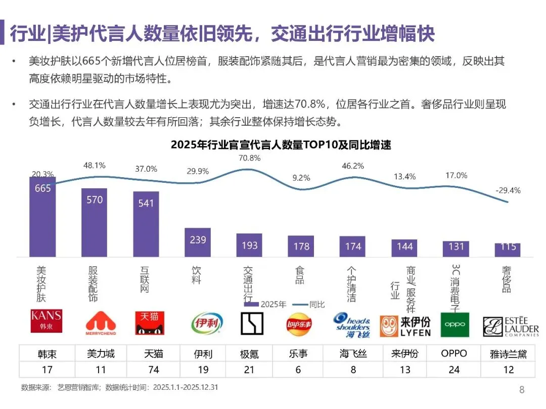 品牌签约活跃度显著提升,2025年官宣代言人的品牌达1467个,较2023年增长38.48%,品牌平均代言人数稳步增加,明星代言已成为品牌营销关键策略。
