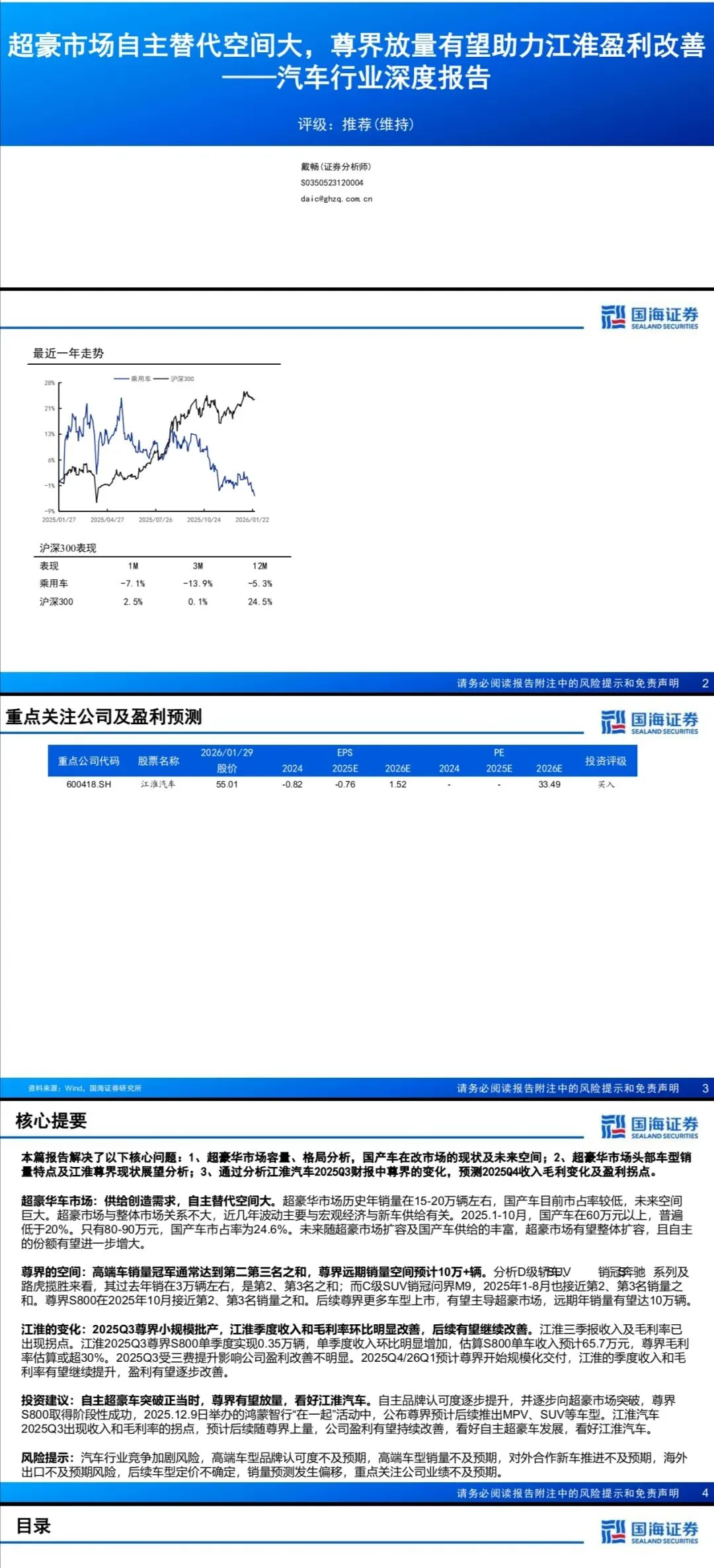[?]主题:汽车行业深度报告:超豪市场自主替代空间大,尊界放量有望助力江淮盈利改善