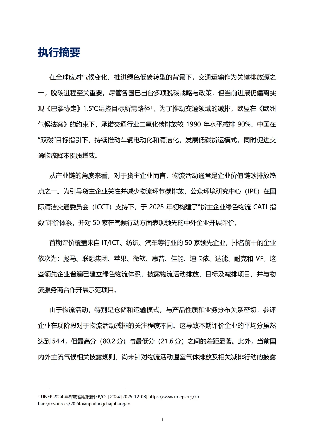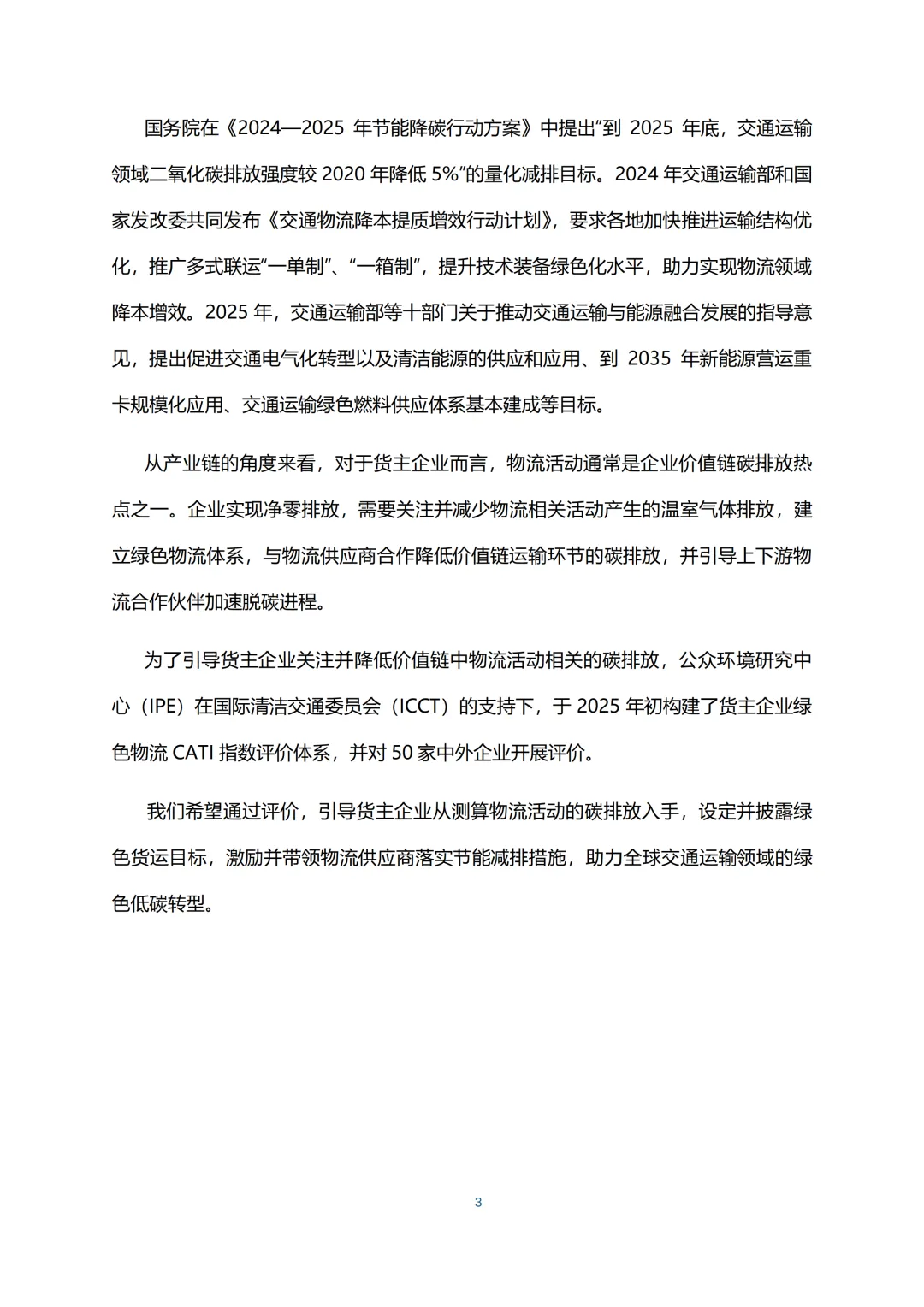 2025年初,公众环境研究中心(IPE)在国际清洁交通委员会(ICCT)支持下,构建货主企业绿色物流CATI指数评价体系,对IT/ICT、纺织、汽车等行业50家中外领先企业完成首期评价。企业平均得分54.4分,彪马、联想集团等跻身前十。评价显示,货主企业物流脱碳已初见成效,在新能源载运工具应用、碳排放披露等方面进展显著,契合当下ESG价值化趋势,但规模化减排乏力等问题仍突出,报告配套提出针对性建议,助力货运领域低碳转型落地。