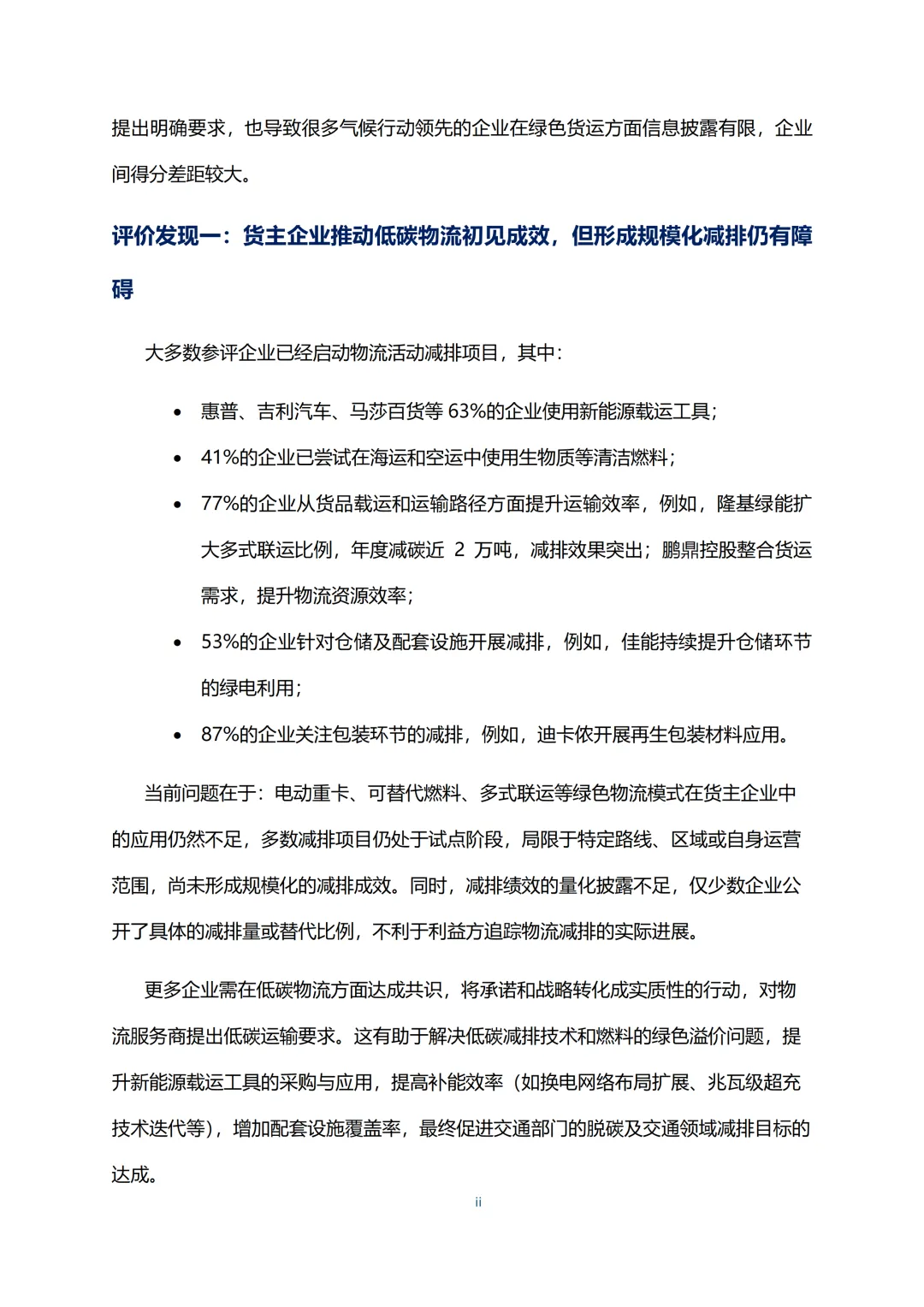 2.货主企业在物流脱碳上有哪些实际成效,又面临哪些突出阻碍?