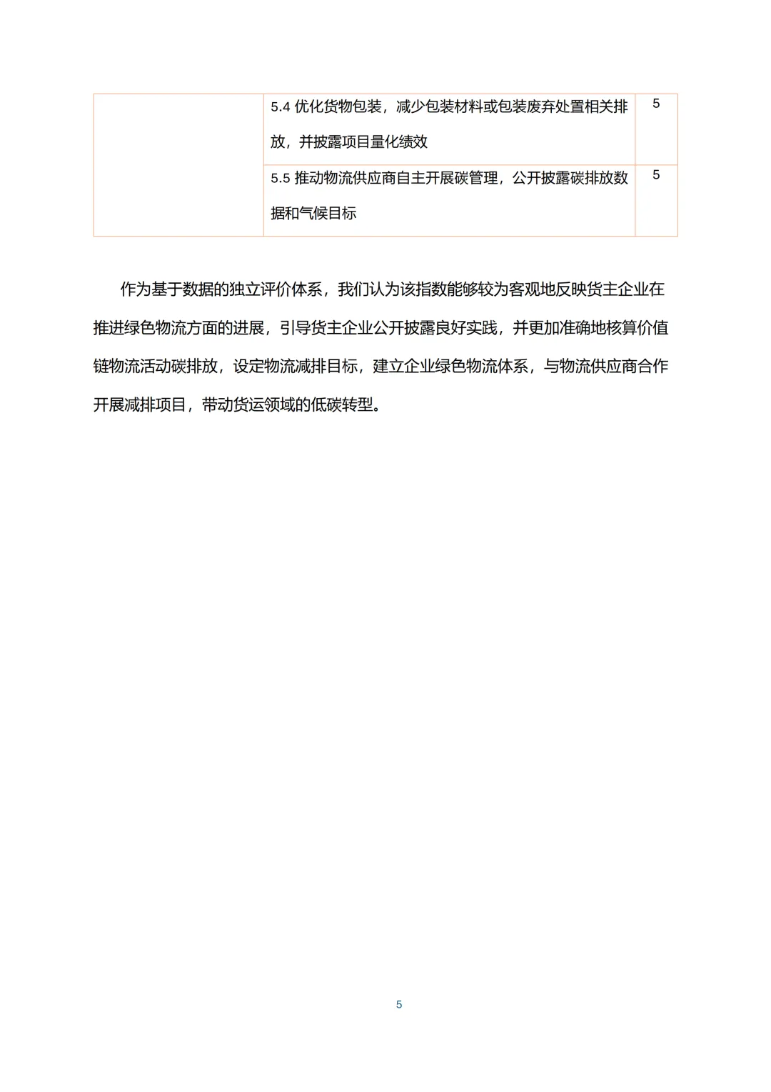 指数包含五个一级指标,总权重合计100%。物流减排行动占比最高达50%,涵盖新能源载运工具使用、运输能效提升等具体举措,是核心评价方向。测算披露权重30%,聚焦排放量核算、供应商数据收集及产品碳足迹披露等关键环节。碳目标设定占10%,重点关注物流减排目标的公开情况。治理机制和碳目标绩效权重分别为4%和6%,前者侧重低碳战略制定,后者考核目标推进成效。