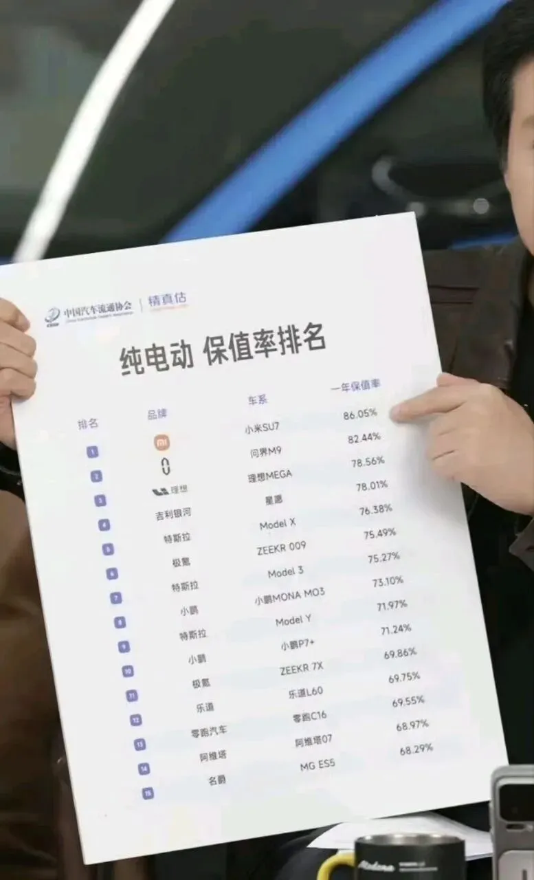 第一张图源自《中国汽车流通协会》昨天发布的公众号内容,第二张图是雷总直播援引的数据。同样是中国汽车流通协会,同样是精真估,雷总援引的是25年数据,昨天他公众号发的是1月份数据,两组数据差别还是有一些的。我不太理解的是到了今年1月保值率能有这么大的差别么?对这个协会的权威性我有那么一点质疑。