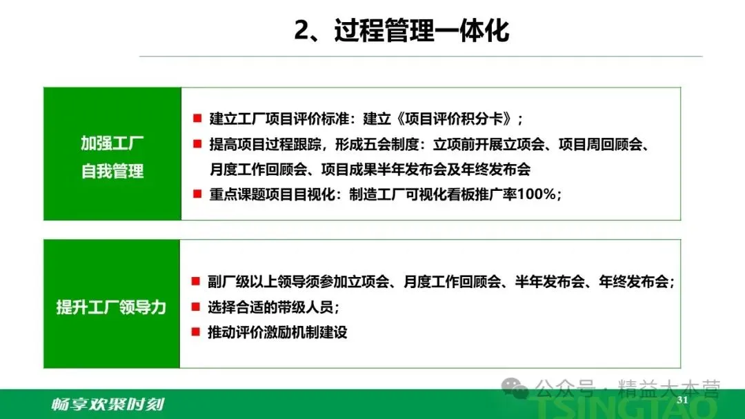 1. **深化精益生产理念**:继续加强员工培训,提高员工对精益生产理念和方法的认识,确保精益生产理念深入人心。