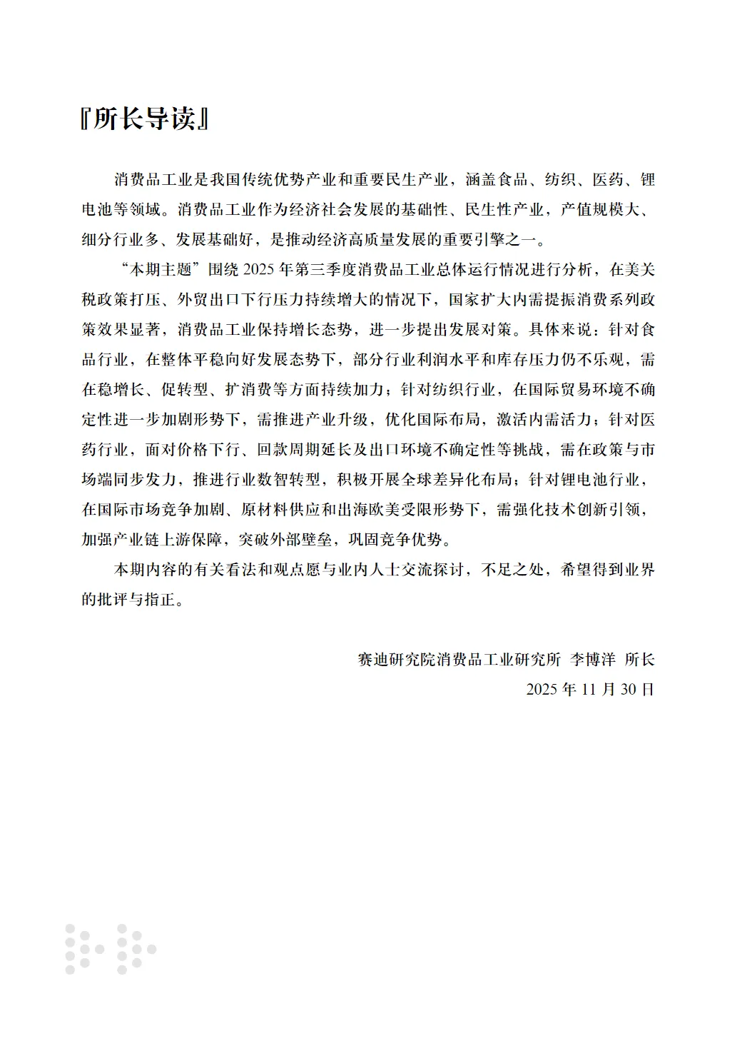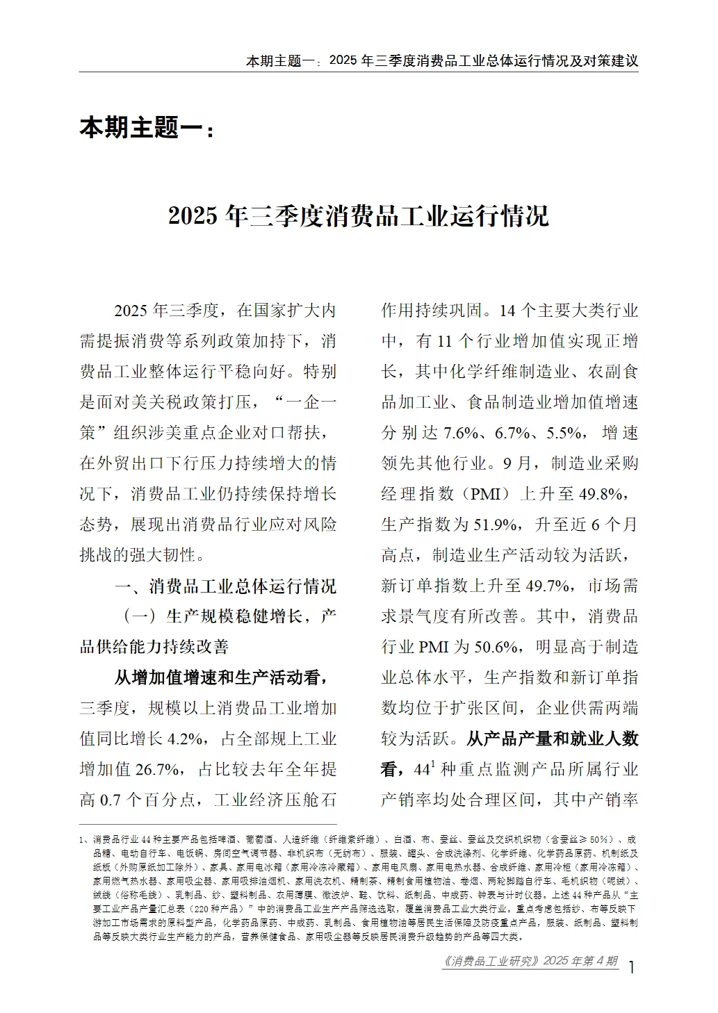 行业研究报告-《2025第三季度消费品工业运行情况研究报告》