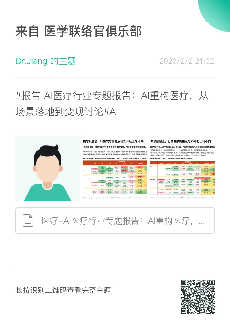 AI医疗行业专题报告:AI重构医疗,从场景落地到变现讨论