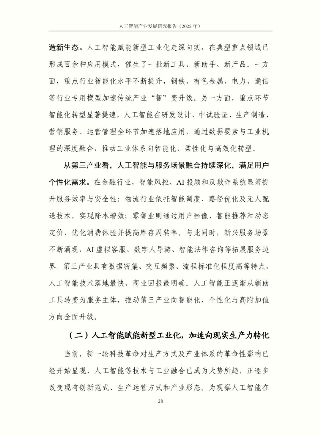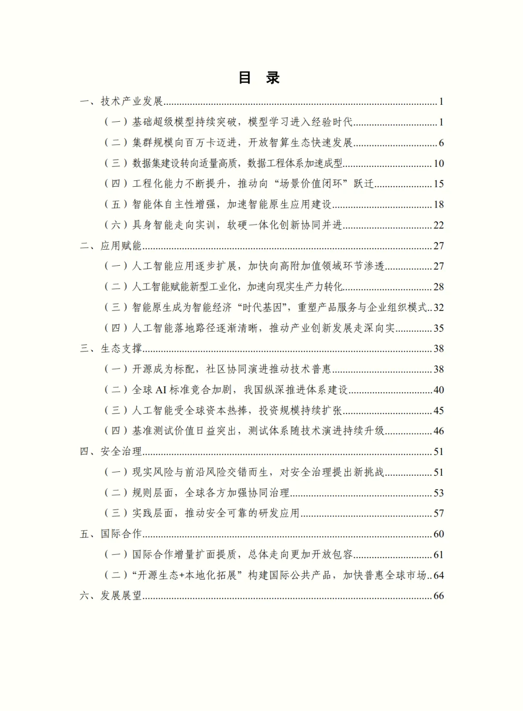 本报告旨在为政府、企业、研究机构提供技术演进、产业升级、应用落地、治理实践与国际合作的全景视图,助力各界把握机遇、应对挑战,共同推动人工智能生态蓬勃发展。