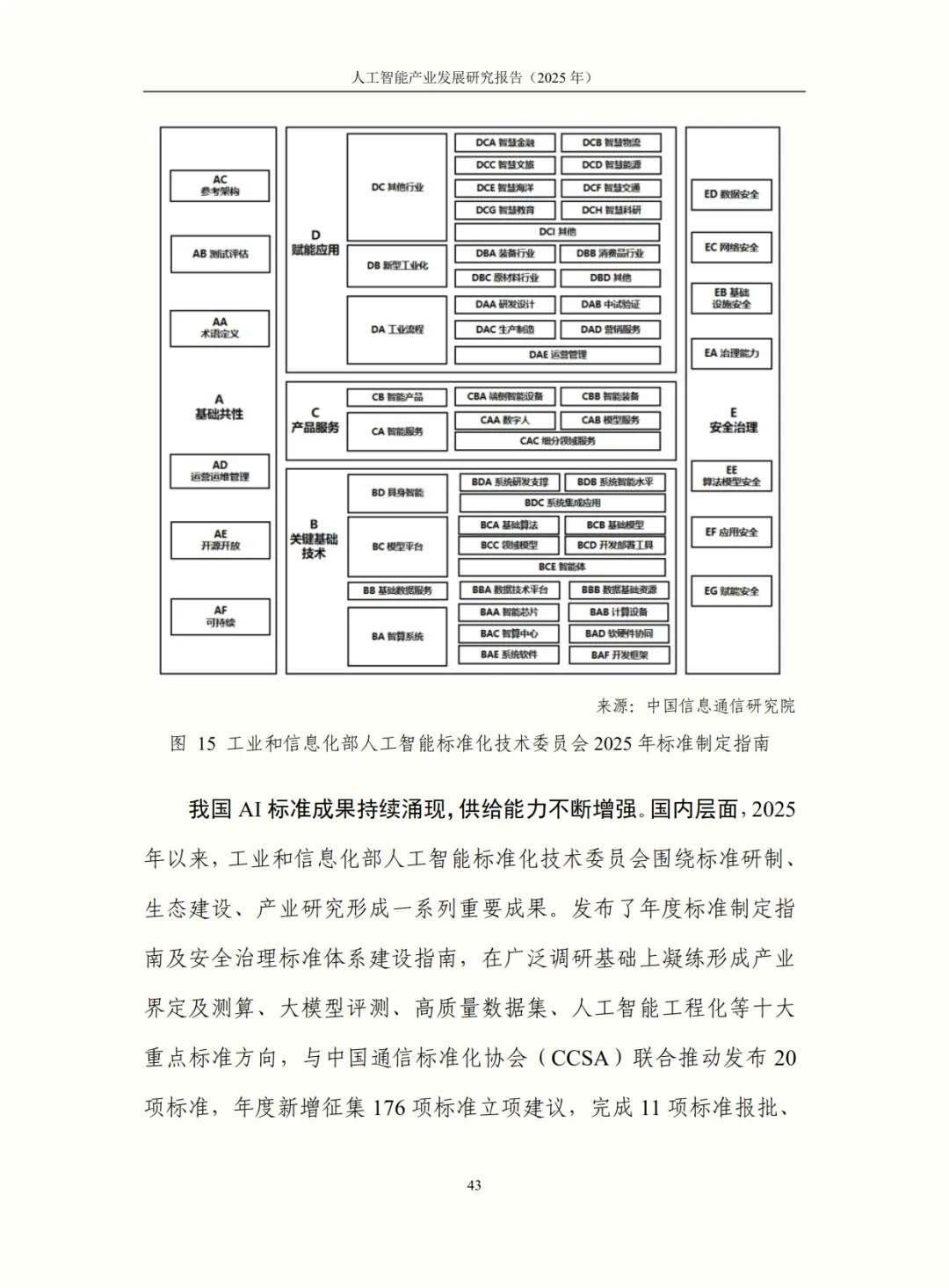 《人工智能产业发展研究报告(2025年)》由中国信息通信研究院(CAICT)编制并于2026年1月发布,聚焦2025年全球与中国人工智能产业发展的全景扫描与深度研判。报告以“技术—应用—生态—治理—合作”为主线,系统呈现人工智能在基础模型、智算设施、数据工程、智能体与原生应用、具身智能等核心技术方向的突破进展,揭示从“能思考”向“能实干”、从工具赋能走向系统重构的趋势。