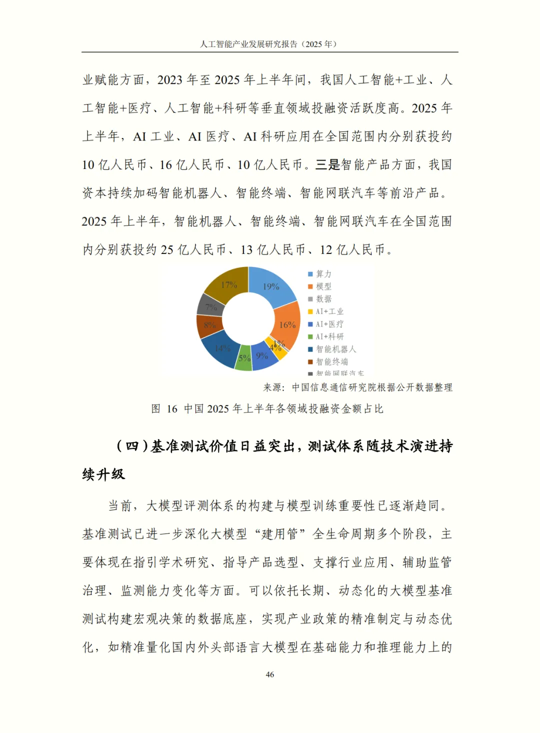 生态支撑方面,开源成为全球技术普惠的关键力量,国产开源模型影响力快速提升,本土社区与国际生态互促共进;AI标准竞合加剧,中国纵深推进体系化建设,在芯片评测、平台、数字人等领域填补国际空白;资本持续热捧,基础层与垂直行业应用成投资焦点;基准测试体系随技术演进而升级,“方升”体系覆盖基础、推理、行业、安全等维度,为产业政策与风险治理提供量化支撑。