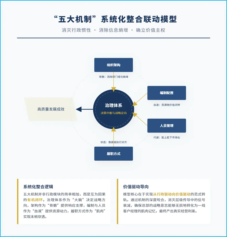 治理进化绝非简单的行政补丁。白皮书提出,要通过治理体系、组织架构、编制配置、人员管理与履职方式的系统整合,彻底消灭“行政惯性”与“经营效率”的错位。让总部从“管控指令发射源”进化为“生产要素赋能器”。