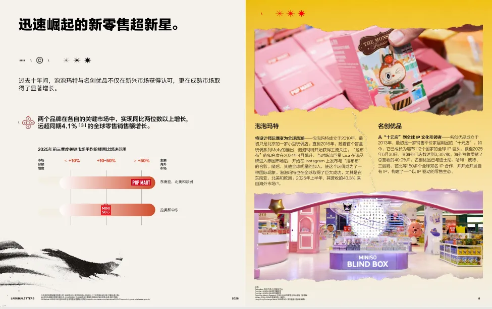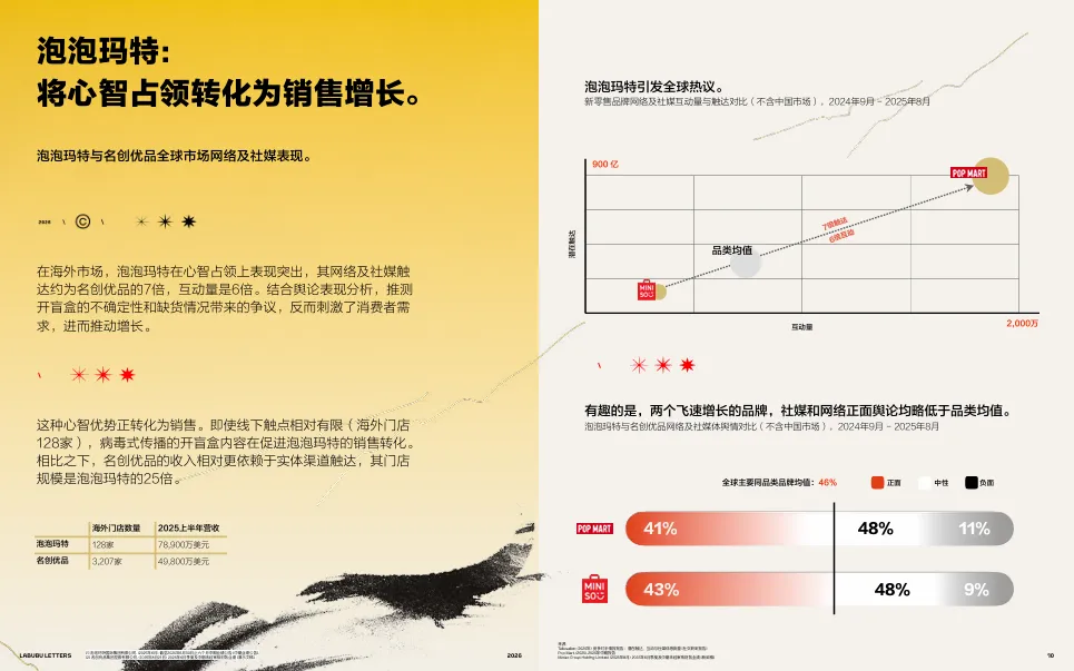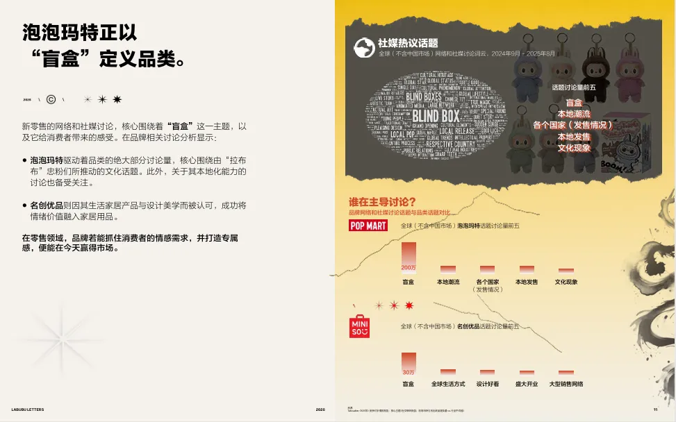 图:泡泡玛特与名创优品全球市场网络及社媒表现对比