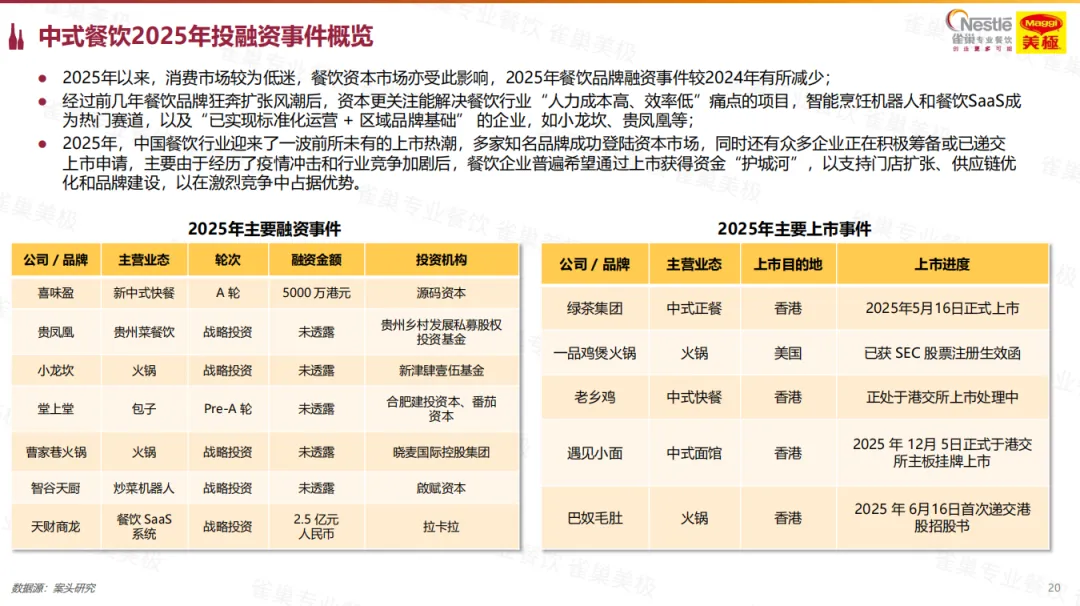 多家品牌启动或完成上市,如绿茶集团、遇见小面、巴奴毛肚火锅等,寻求资本“护城河”。