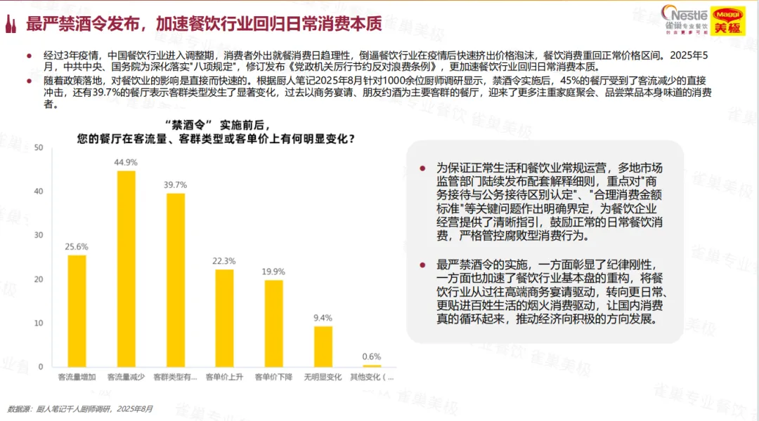 最严禁酒令发布:加速餐饮回归日常消费,45%餐厅客流受影响,菜单向亲民化调整。