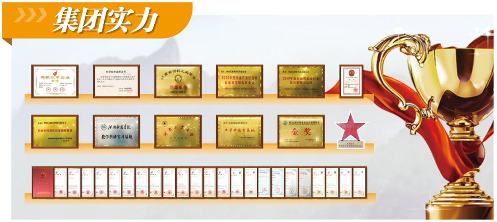 集团自2011年成立后,主营饲料研发与销售。针对中国集约化的养殖特点,充分利用中国特有的中医药理论和资源,整合中国传统医药在繁殖和机体调理领域的成熟理念,先后研发出新一代的蛋鸡预混料——E系列、EA系列、M系列、美禽S系列、粉壳蛋鸡专用料P系列,得到市场充分的验证和认可。