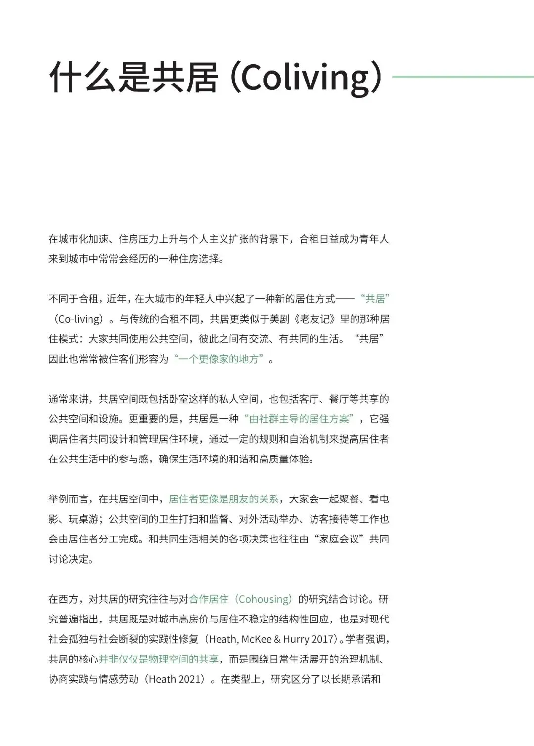 不同于合租,近年,在大城市的年轻人中兴起了一种新的居住方式——“共居”(Co-living)。与传统的合租不同,共居更类似于美剧《老友记》里的那种居住模式:大家共同使用公共空间,彼此之间有交流、有共同的生活。“共居”因此也常常被住客们形容为“一个更像家的地方”。