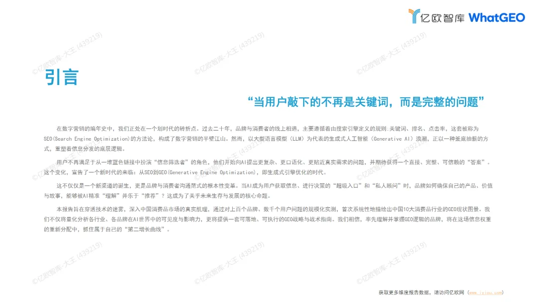 行业研究报告-《亿欧智库2026中国十大消费品行业GEO现状及趋势研究报告》