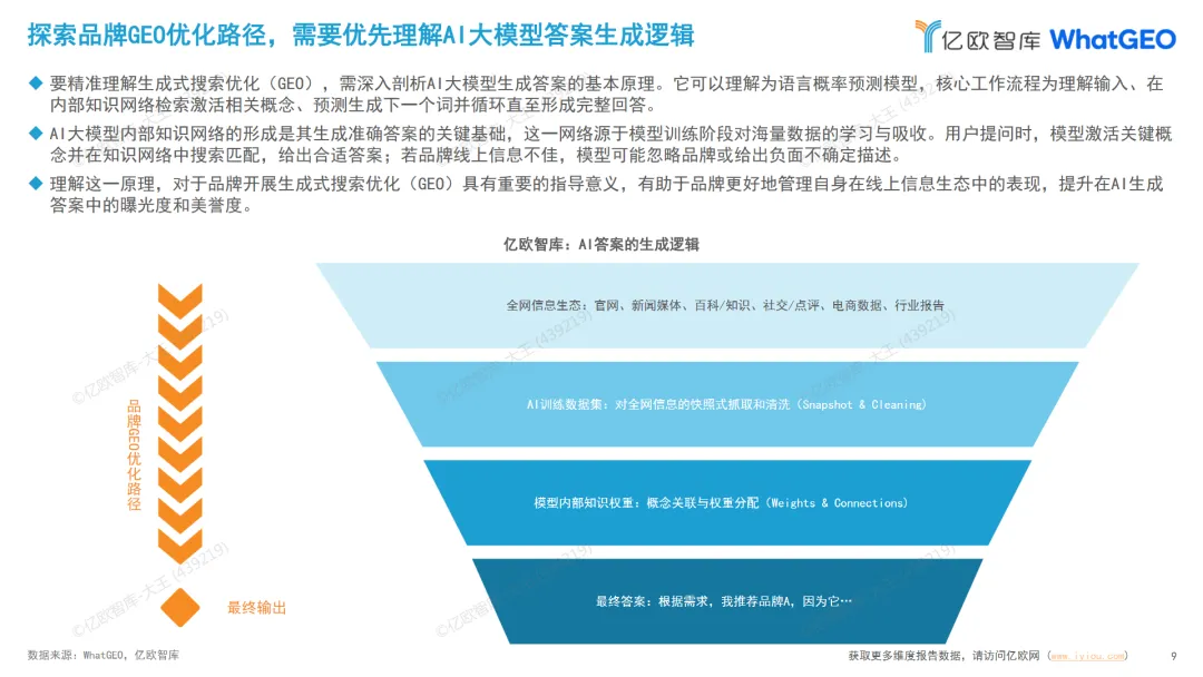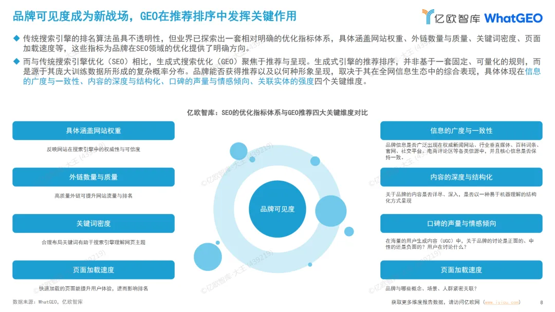 本篇行业报告可以通过扫下方知识星球下载。39元就可以下载星球所有报告。免费提供报告查找服务。在2026年,随着生成式人工智能技术的兴起,数字营销领域经历了一场从SEO到GEO的深刻转变。GEO,即生成式引擎优化,已经成为品牌获取精准流量的新引擎。这一转变不仅仅是技术层面的更新,更是品牌与消费者沟通范式的根本性变革。在这一背景下,亿欧智库发布的研究报告揭示了中国十大消费品行业的GEO现状和趋势,为品牌提供了宝贵的洞察和行动指南。报告指出,不同消费品行业的GEO成熟度存在明显差异。智能家电和3C数码等行业由于参数体系标准化和专业评测的丰富,AI对这些行业的理解较深,品牌竞争已经从曝光量转向“语义细节”的争夺。相比之下,酒类和家居行业由于产品体验依赖主观感官且缺乏结构化数字内容,AI在回答相关问题时常常出现信息不足,导致品牌存在感稀缺。在传统货架电商红利见顶的背景下,一些技术驱动型新锐品牌在GEO战场上强势突围,证明了内容的信息密度优于广告声量。这些品牌通过向AI投喂高质量的知识性内容,绕开传统巨头的渠道壁垒,实现了差异化竞争。报告还强调了内容基建、口碑风向与语义关联在构建GEO效能中的重要作用。这三大要素共同塑造了品牌在算法眼中的立体语义形象,决定品牌在AI回答中的顺位。然而,随着AI技术的发展,也出现了新的风险——AI幻觉。这意味着品牌需要进行“防御性”建设,以确保在AI生成的内容中保持良好的形象和声誉。亿欧智库的报告为品牌提供了一个清晰、可量化的GEO指南,帮助品牌理解AI驱动下的品牌曝光新逻辑,并在新的竞赛中抢占先机。通过深入分析和实证研究,报告不仅描绘了中国消费品行业的GEO生态现状,还提出了衡量品牌GEO表现的核心指标体系,为品牌提供了具体的行动指南。在这个信息权重重新分配的时代,理解并掌握GEO逻辑的品牌将能够抓住属于自己的“第二增长曲线”。免责声明:以上分享报告为公开合法渠道获得,内容大部分来源于网络,版权归原作者所有,如有侵权,请及时与我们联系,我们将第一时间保障您的权益。推荐内容仅供参考学习,不构成投资建议。