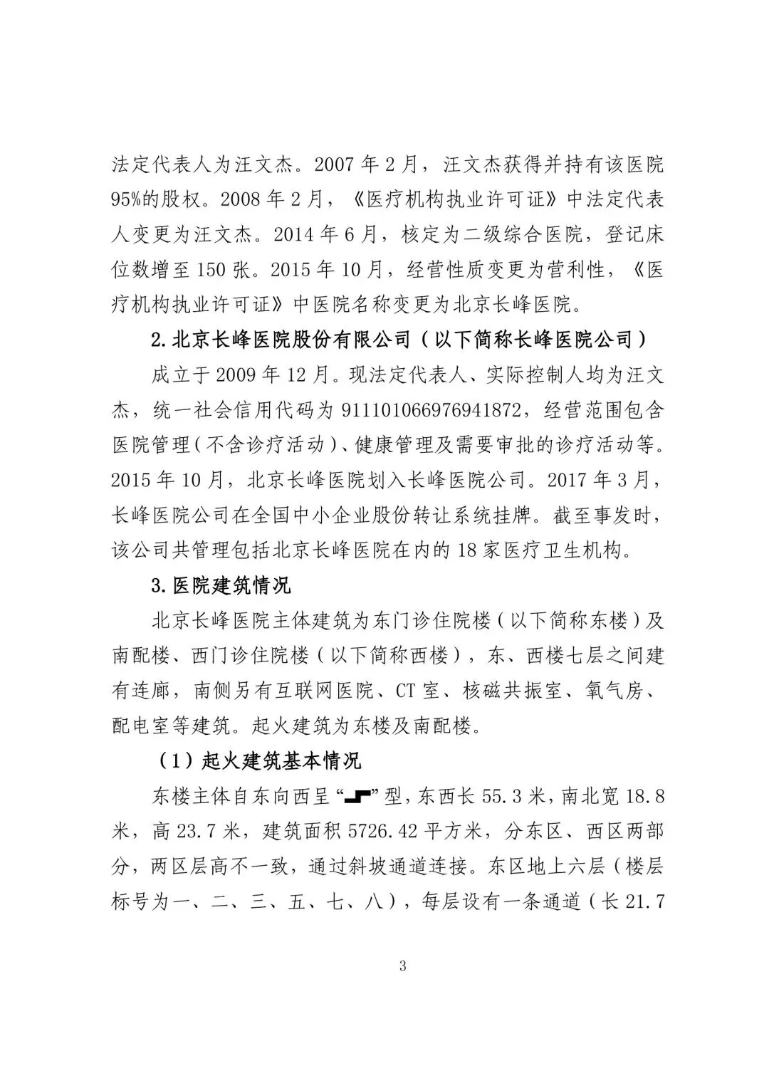 (1)长峰医院公司