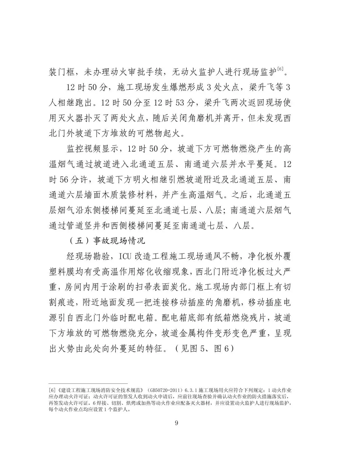 a. 施工现场安全管理缺失。未根据施工现场实际情况制定施工方案,未对作业人员开展安全生产教育和培训并进行针对性技术交底;未建立用火、用电管理制度并采取防火措施,施工区和非施工区之间未进行防火分隔,未配有专人值守;作业人员在未办理动火审批手续违规进行明火作业、现场无人监护、未对现场可燃物进行清理的情况下,使用角磨机进行切割作业;未针对易燃易爆物品制定防火安全措施,违规在作业场所调料;环氧树脂自流平地面施工与净化门安装交叉作业。