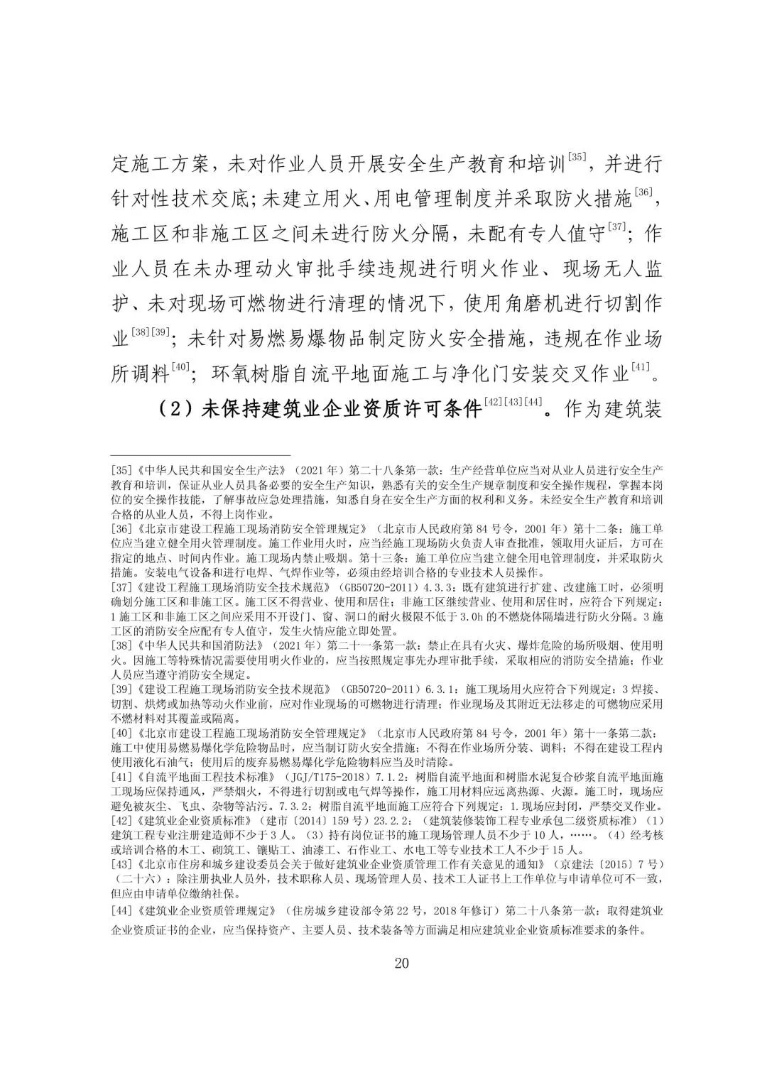 b. 未保持建筑业企业资质许可条件。作为建筑装修装饰工程二级承包资质公司,事发时仅有 1 名注册建造师、6名缴纳社保人员;未按规定设立安全生产管理机构并配备专职安全生产管理人员。