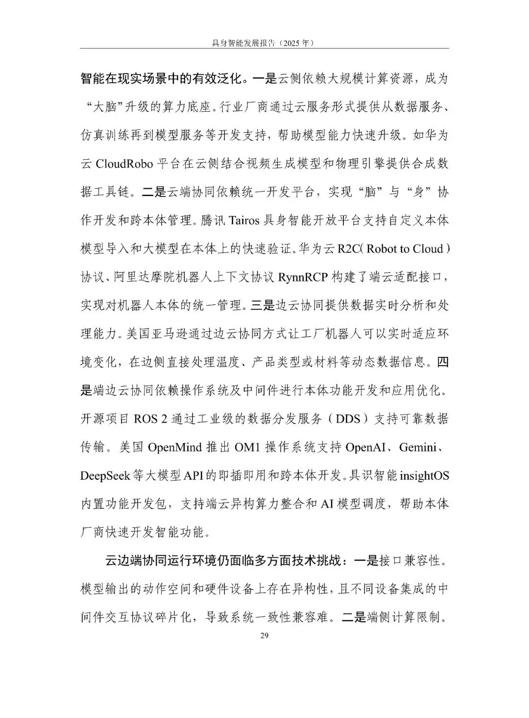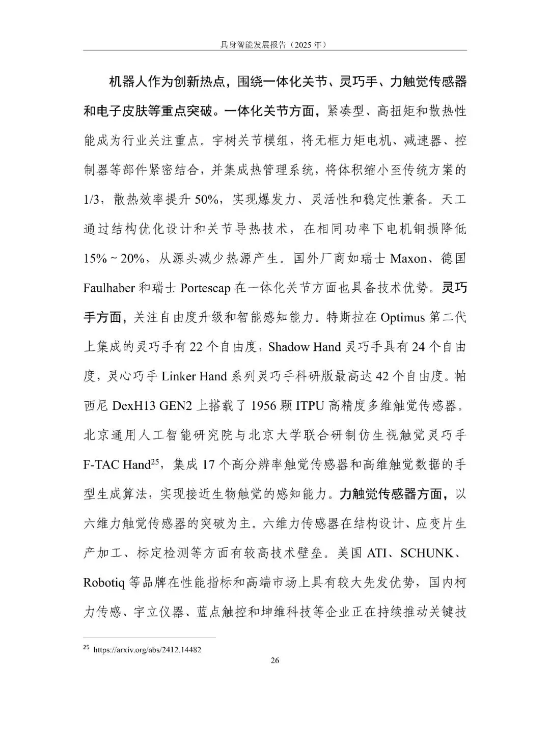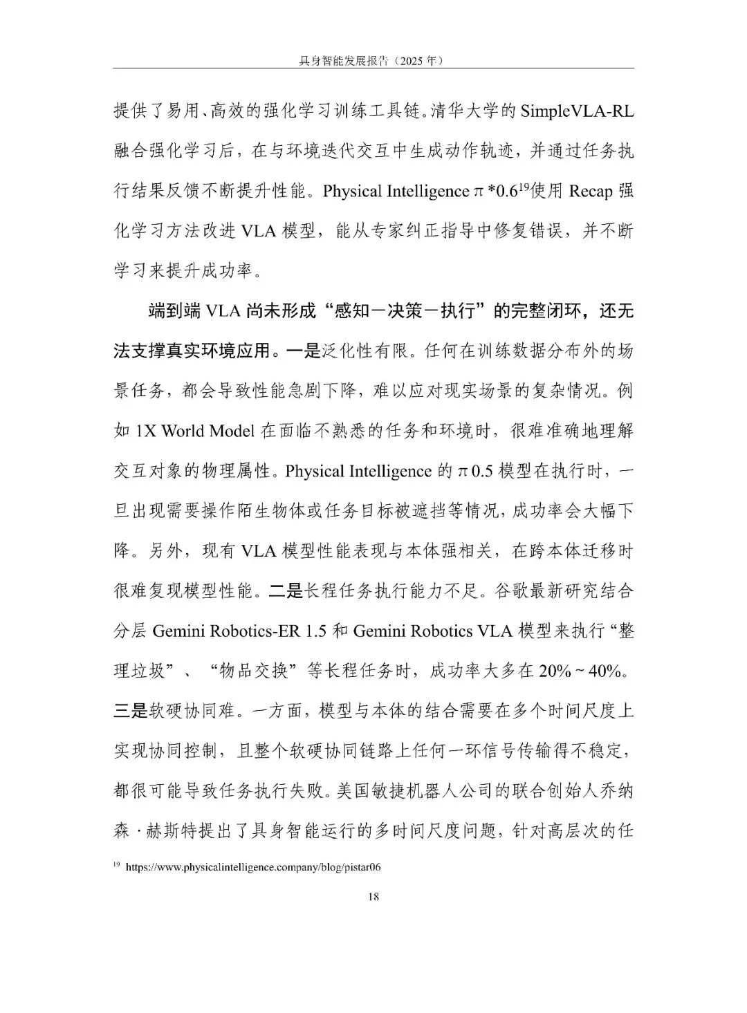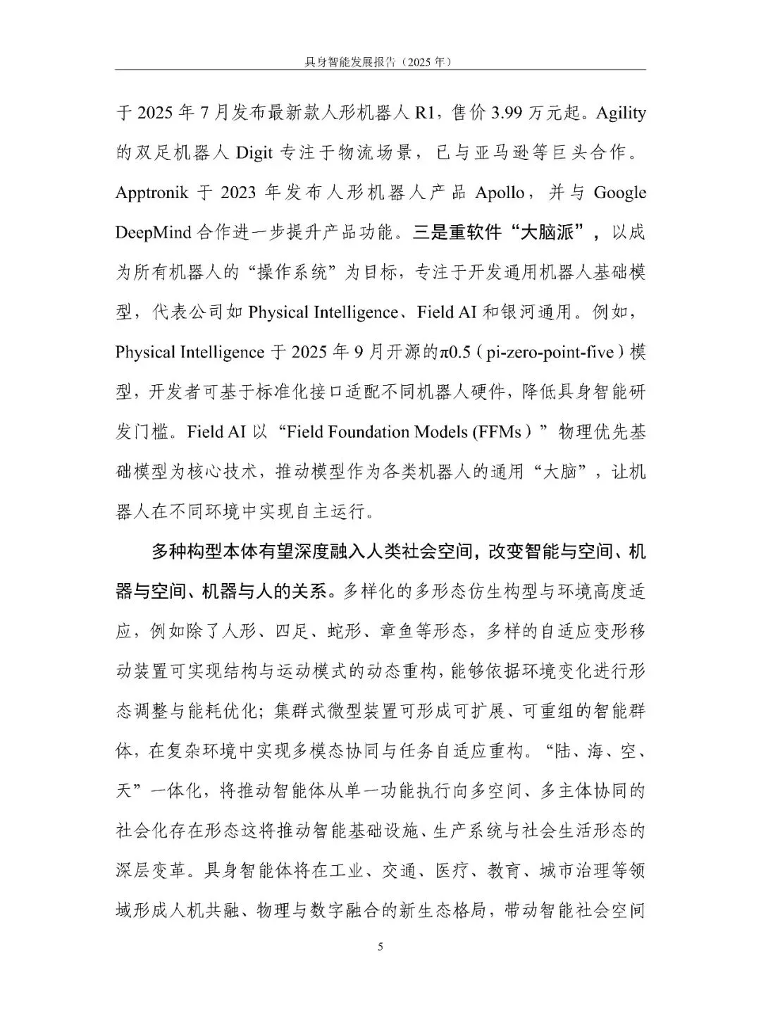 具身智能正从“能动”走向“好用”。报告用一句话定调:它是 AI 走进物理世界、形成“感知-认知-决策-执行”数据闭环的新范式,核心在“数据-模型-本体”飞轮。2025 年全球融资超 700 亿元,但仍在“演示”期:VLA 大模型爆发却泛化不足,本体呈人形、四足、轮臂多元,却受限于成本高、寿命短、安全缺标。训练场全国已建 30 余座,真机数据仍缺百万小时。