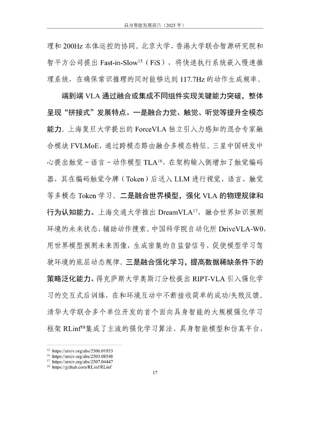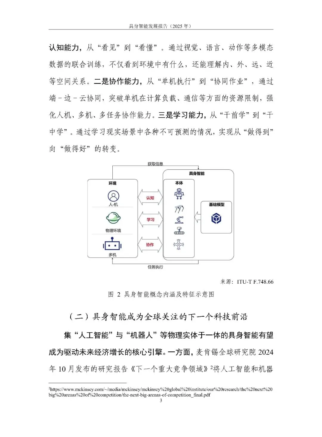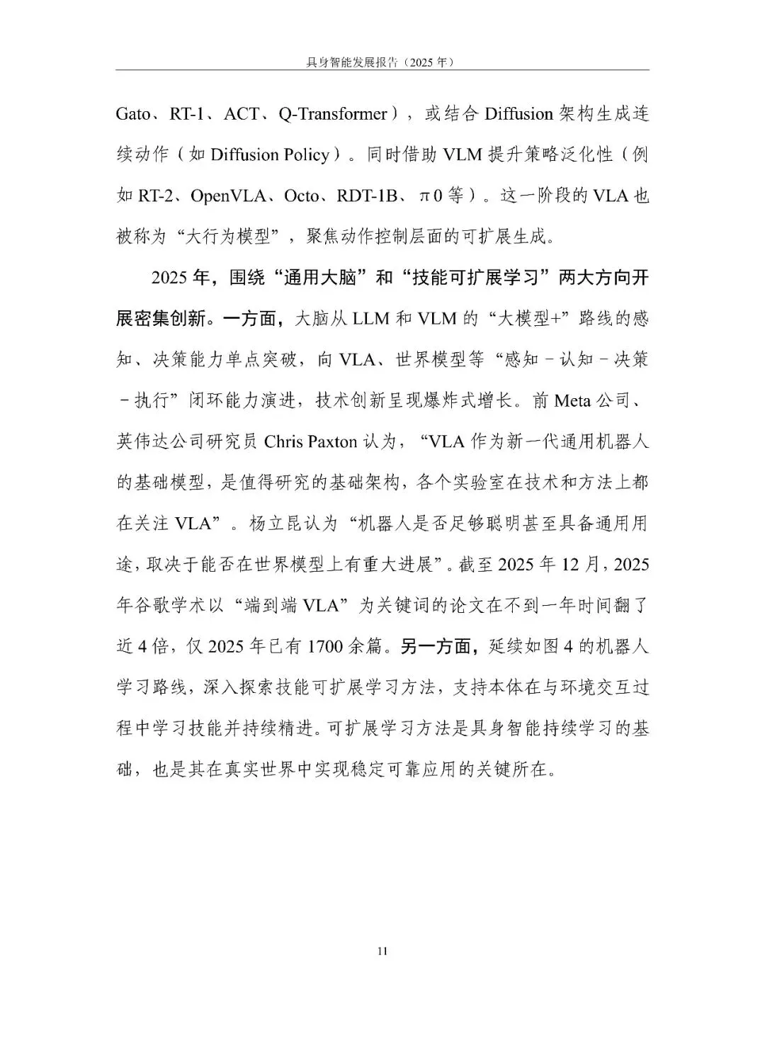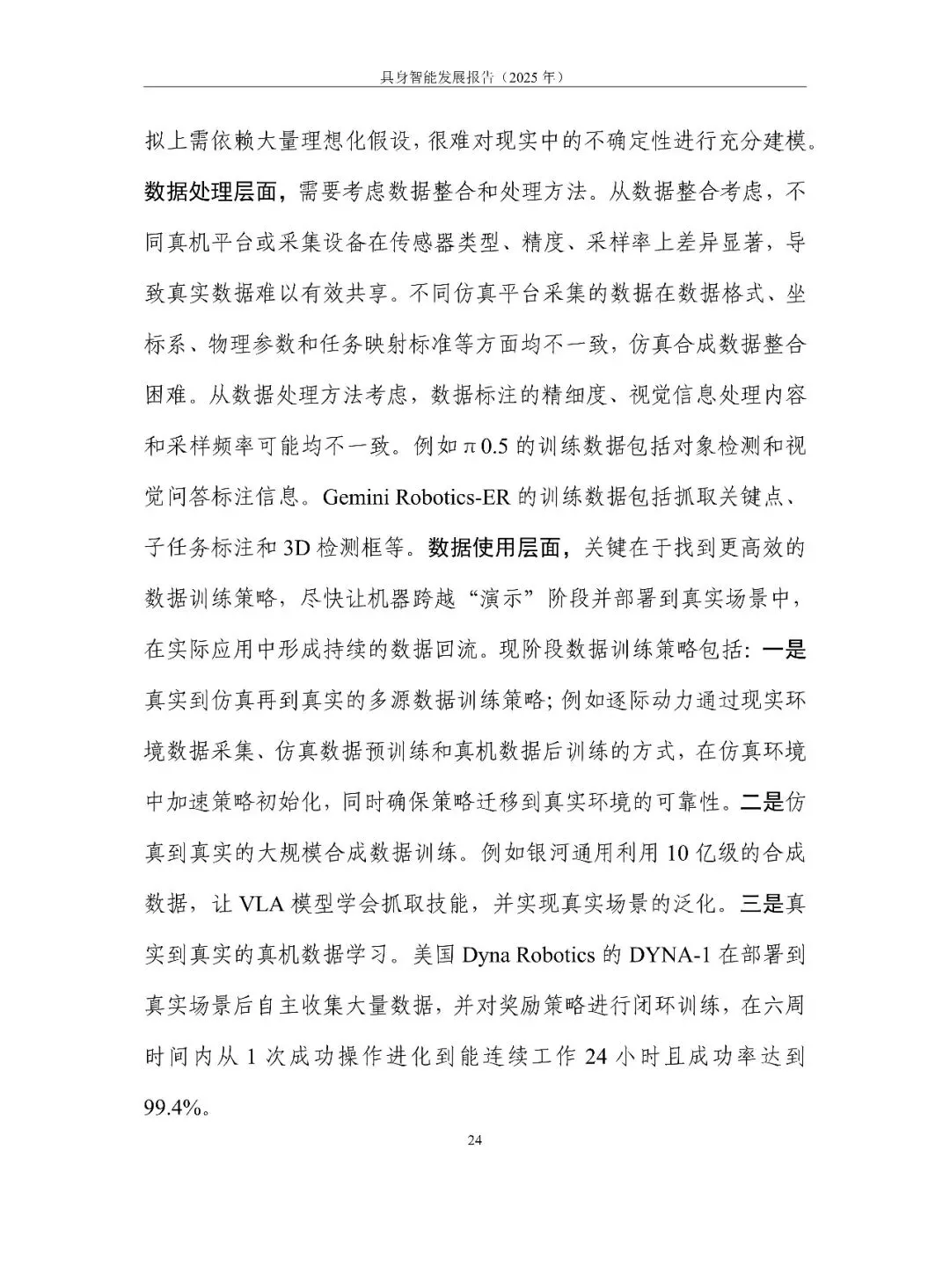 具身智能正从“能动”走向“好用”。报告用一句话定调:它是 AI 走进物理世界、形成“感知-认知-决策-执行”数据闭环的新范式,核心在“数据-模型-本体”飞轮。2025 年全球融资超 700 亿元,但仍在“演示”期:VLA 大模型爆发却泛化不足,本体呈人形、四足、轮臂多元,却受限于成本高、寿命短、安全缺标。训练场全国已建 30 余座,真机数据仍缺百万小时。