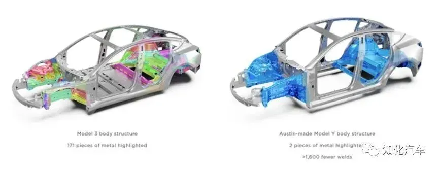 特斯拉:计划用2-3个大型压铸件替代原先370个零件组成的下车体总成,重量将降低30%,制造成本下降40%,预计2025年实现;