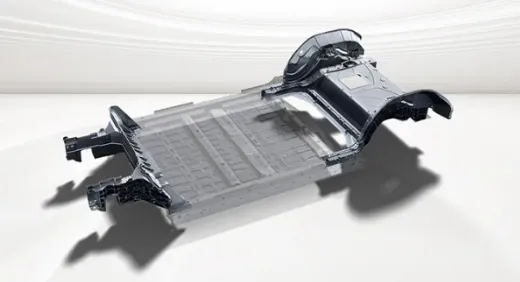 2022年5月,大众汽车就试制出首个后车身一体式铝压铸件样件。该铝压铸样件采用4400吨压铸机生产,为SSP平台开发,取代约30多个零部件,可以减重10kg。2024年3月,大众宣布,在位于德国卡塞尔的大众集团零部件生产基地,设立超大型铸件技术开发中心,加快“一体化压铸技术”的应用推广。2025年9月,在德国慕尼黑举办的IAA Mobility 2025车展上,大众汽车宣布将为多款即将上市的入门级电动车采用一体化压铸技术,展示了由4400吨压铸机制造的电池框架样件,该部件长1.7米、宽1.15米,替代了123个独立部件,助力整车减重约10%(62公斤),并采用三板模具技术,生产周期缩短至120秒,成本降低约15%。