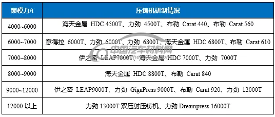 大型压铸设备:6000T、9000T、12000T