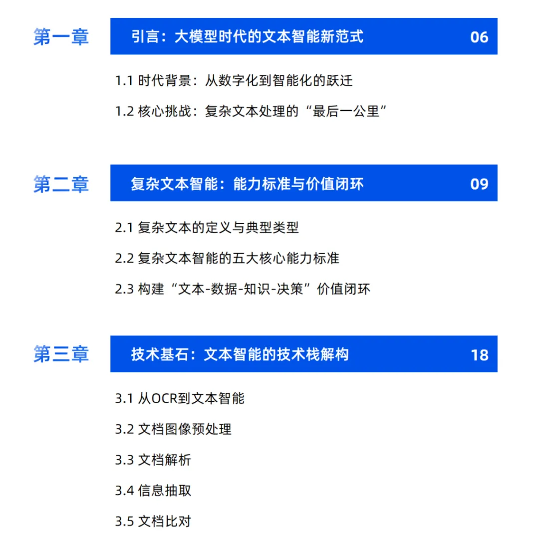本白皮书报告揭开了这个行业的伤疤,更给出了一把打开价值宝库的金钥匙。白皮书通过85页深度剖析和11个标杆案例,揭示了一个确定的趋势:以多模态大模型为代表的文本智能技术,正在从"辅助工具"进化为"决策大脑",企业文档处理正在经历从"数字化"到"价值化"的史诗级跃迁。