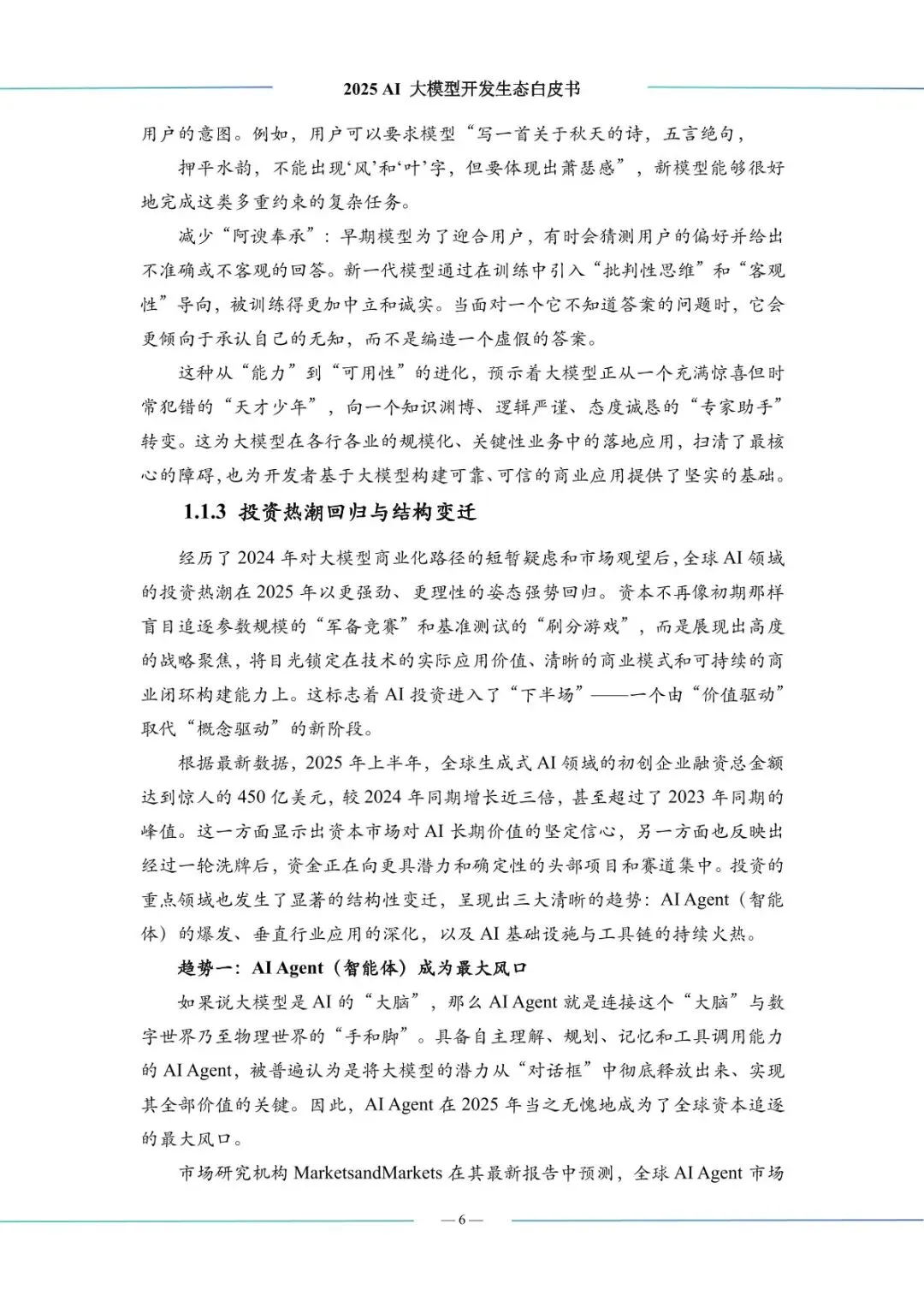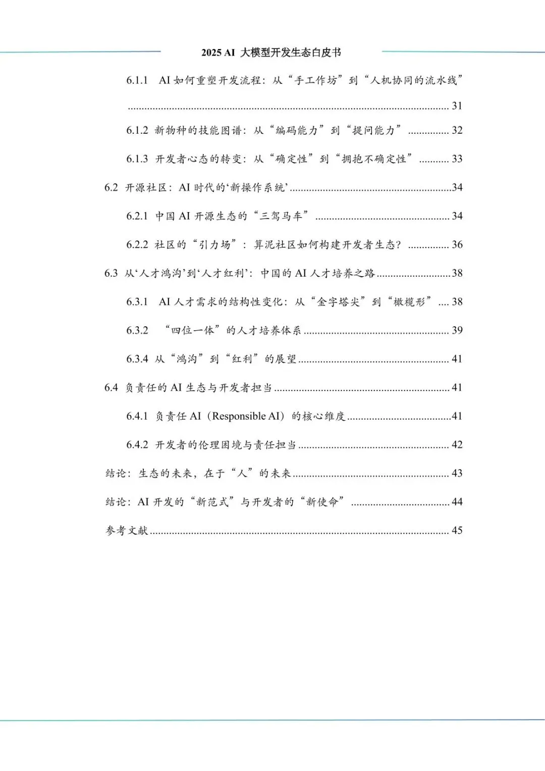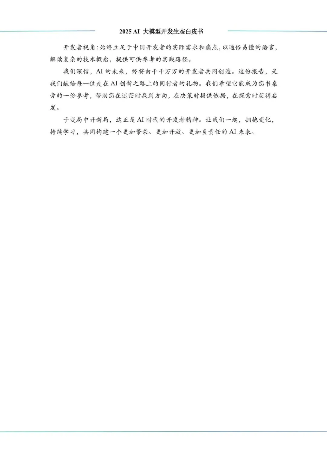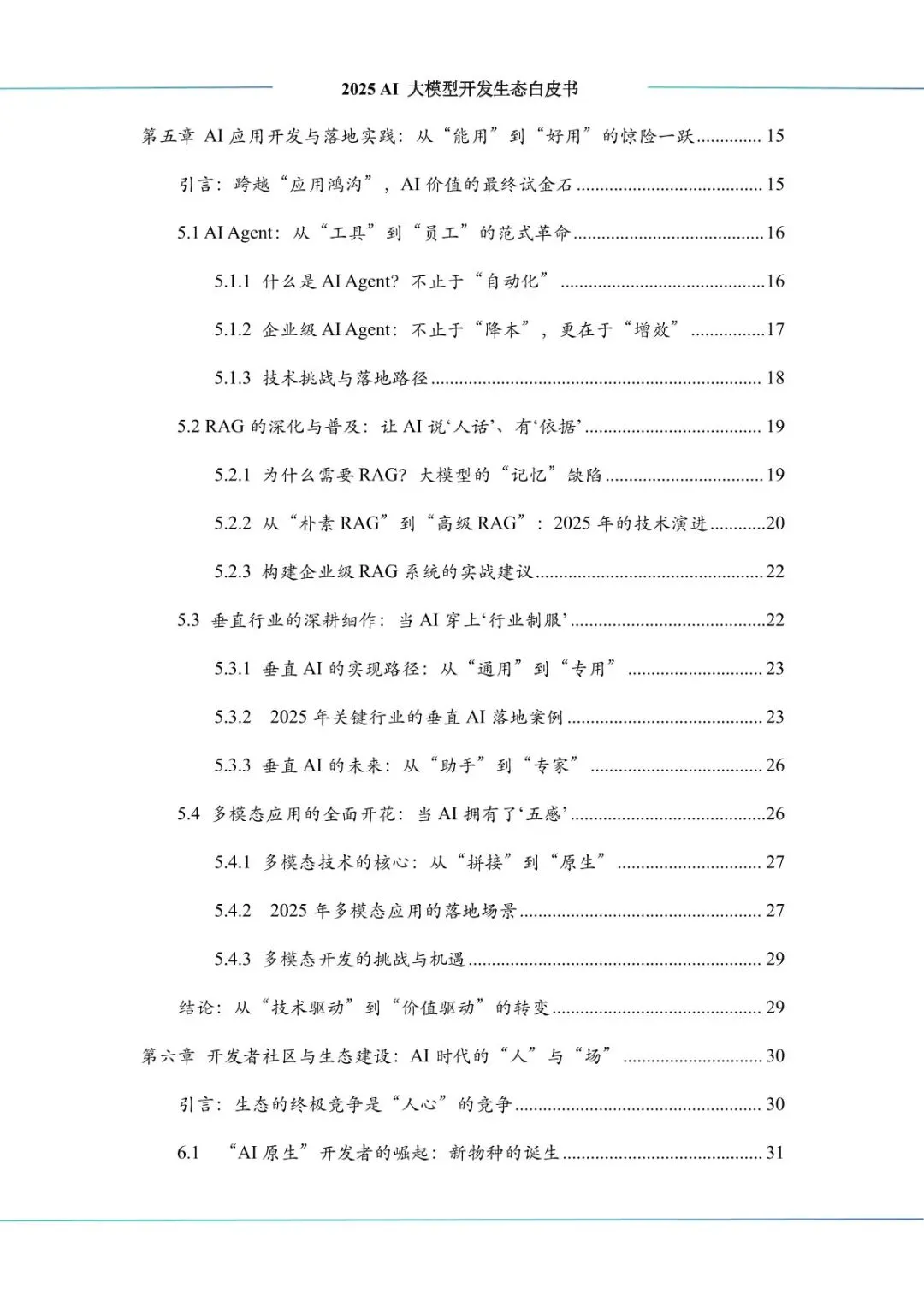 :AI 应用从数字领域向物理世界渗透,RAG 技术深化普及,垂直行业应用(智能制造、金融科技、医疗等)快速落地,多模态应用全面开花。开发者群体从 “编码能力” 向 “提问能力” 转型,开源社区成为创新核心,中国 “四位一体” 人才培养体系逐步完善,负责任 AI 成为行业共识,推动生态可持续发展。